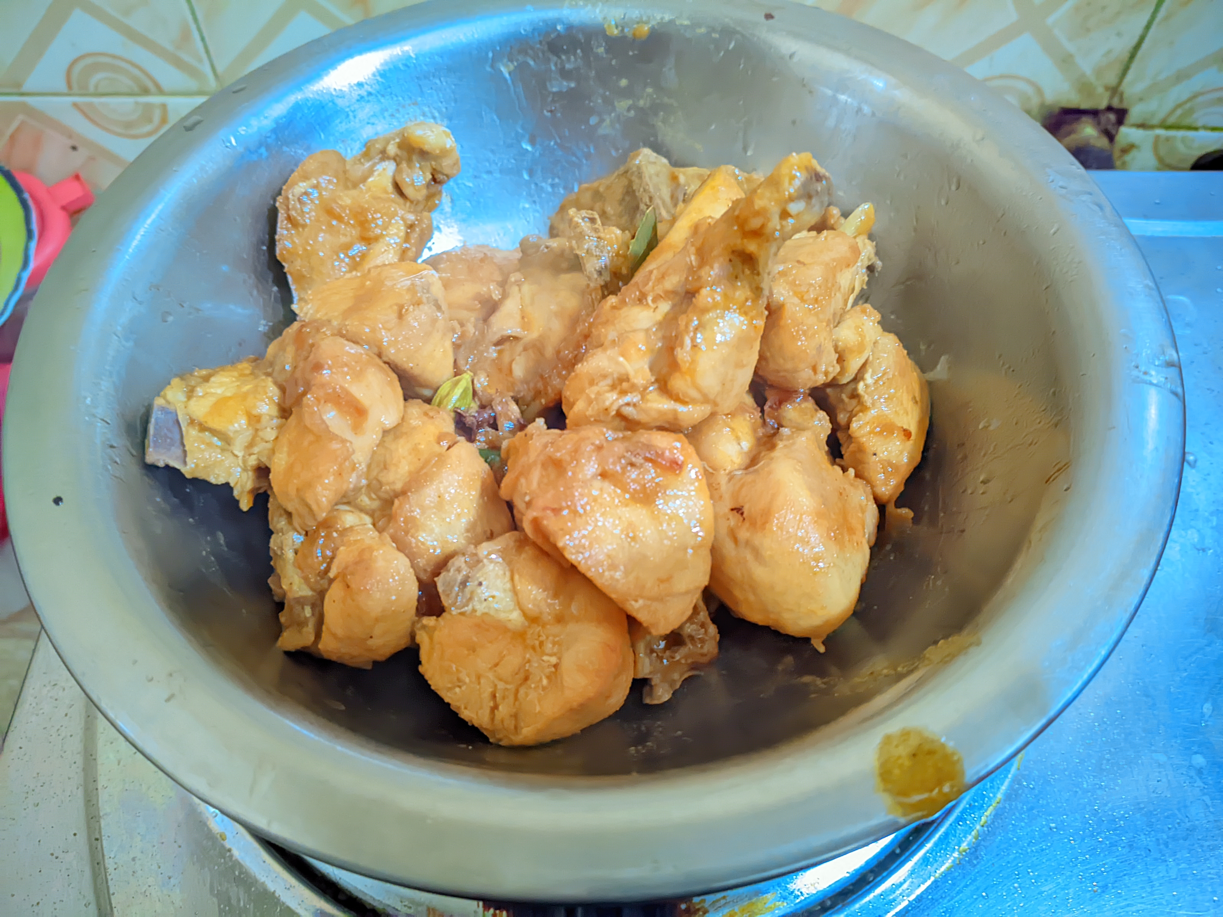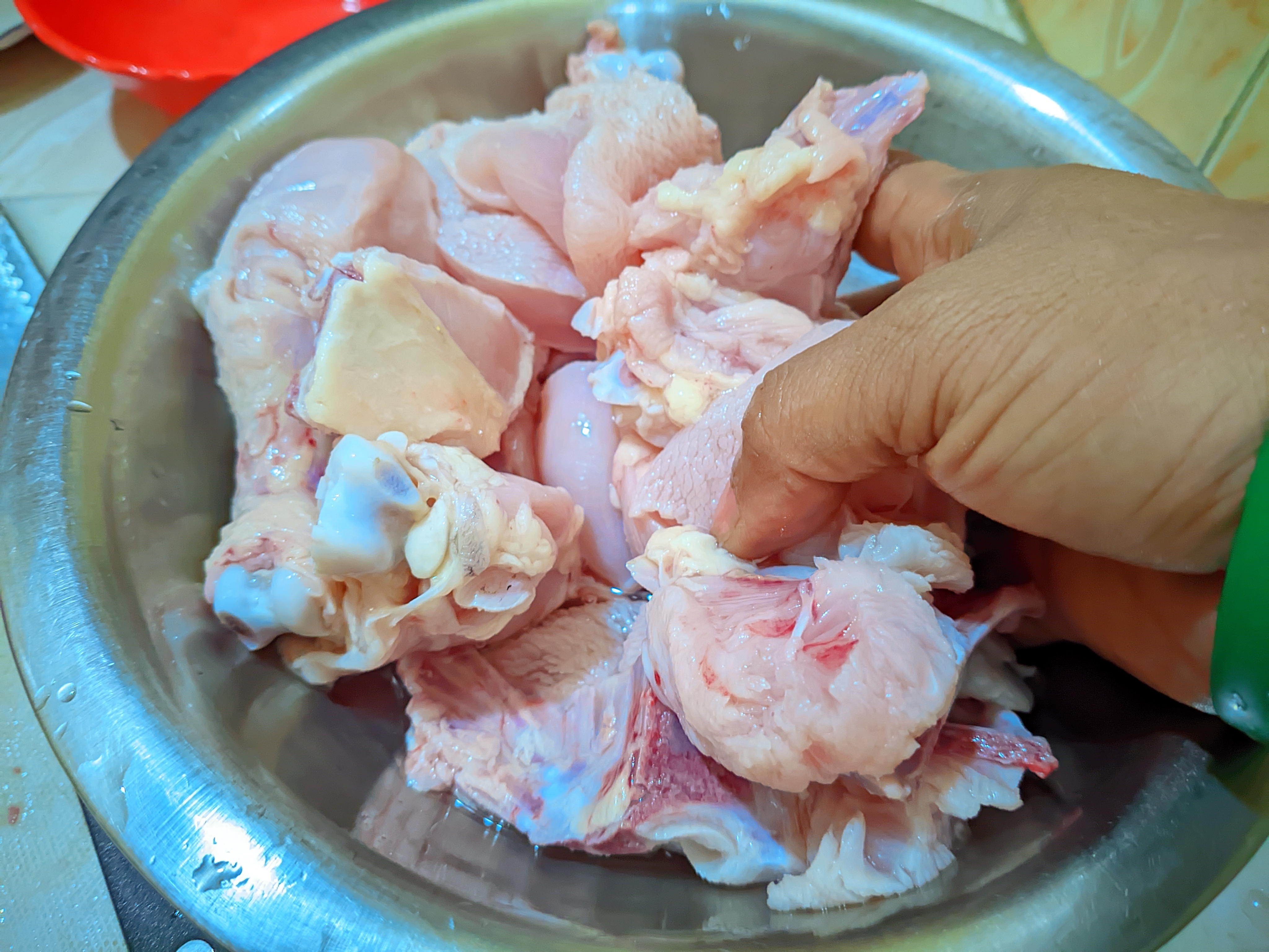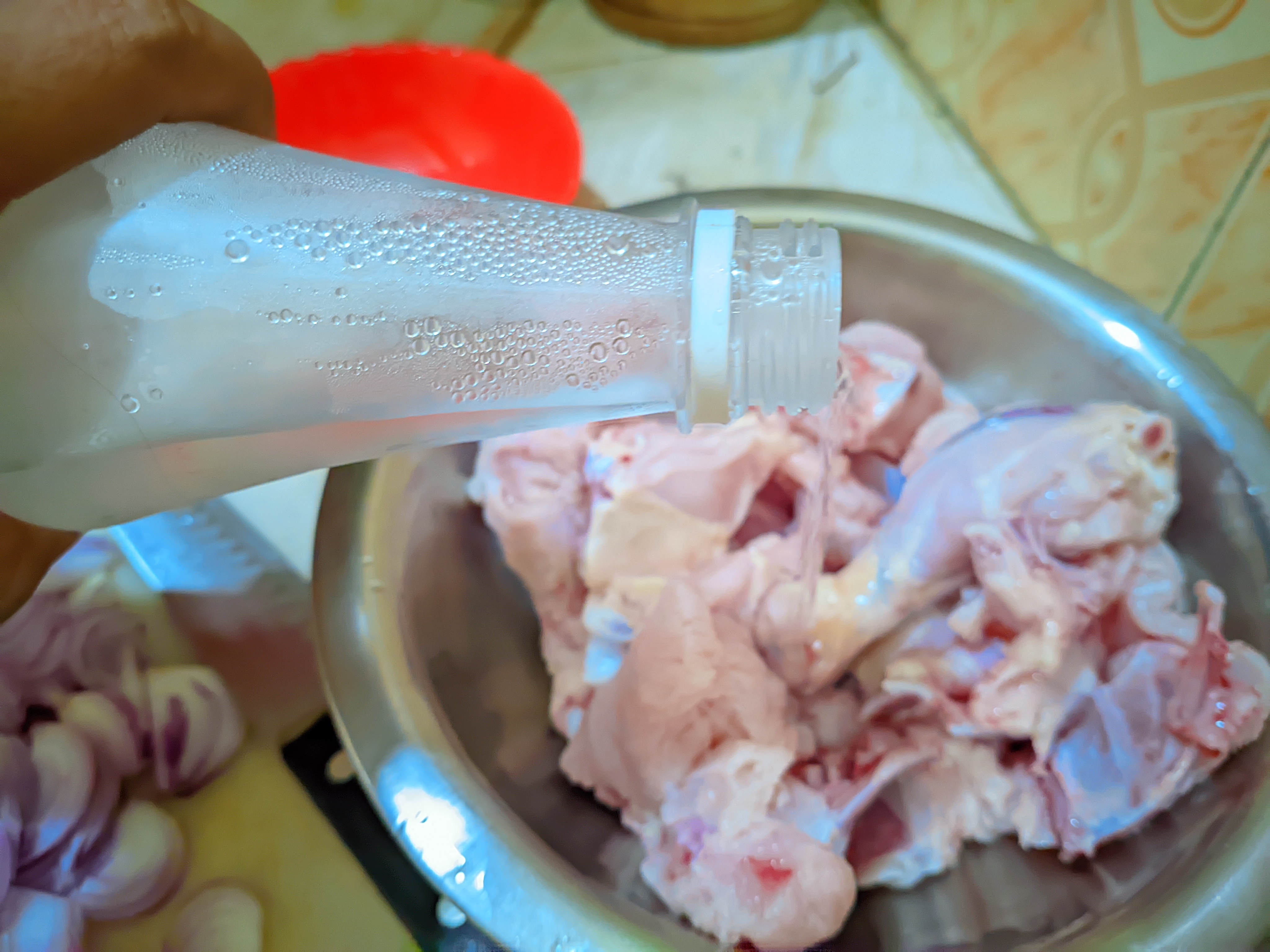 - First, I wash the chicken meat several times with clean water. Then I use vinegar. I soak the meat in vinegar for some time. This will make the meat free from contamination.