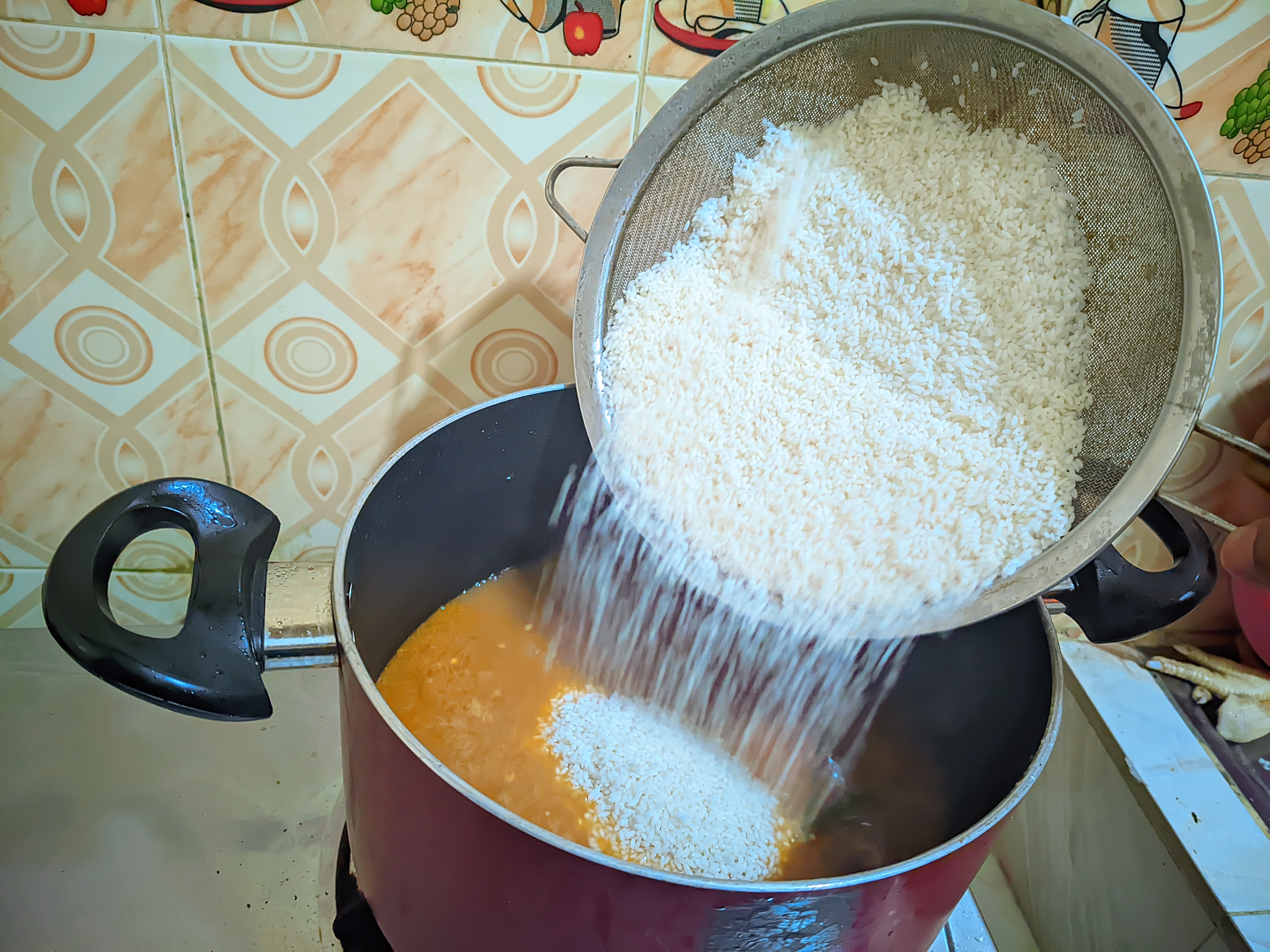 - I wash the rice and the rice with water several times, and let the water drain using a strainer.