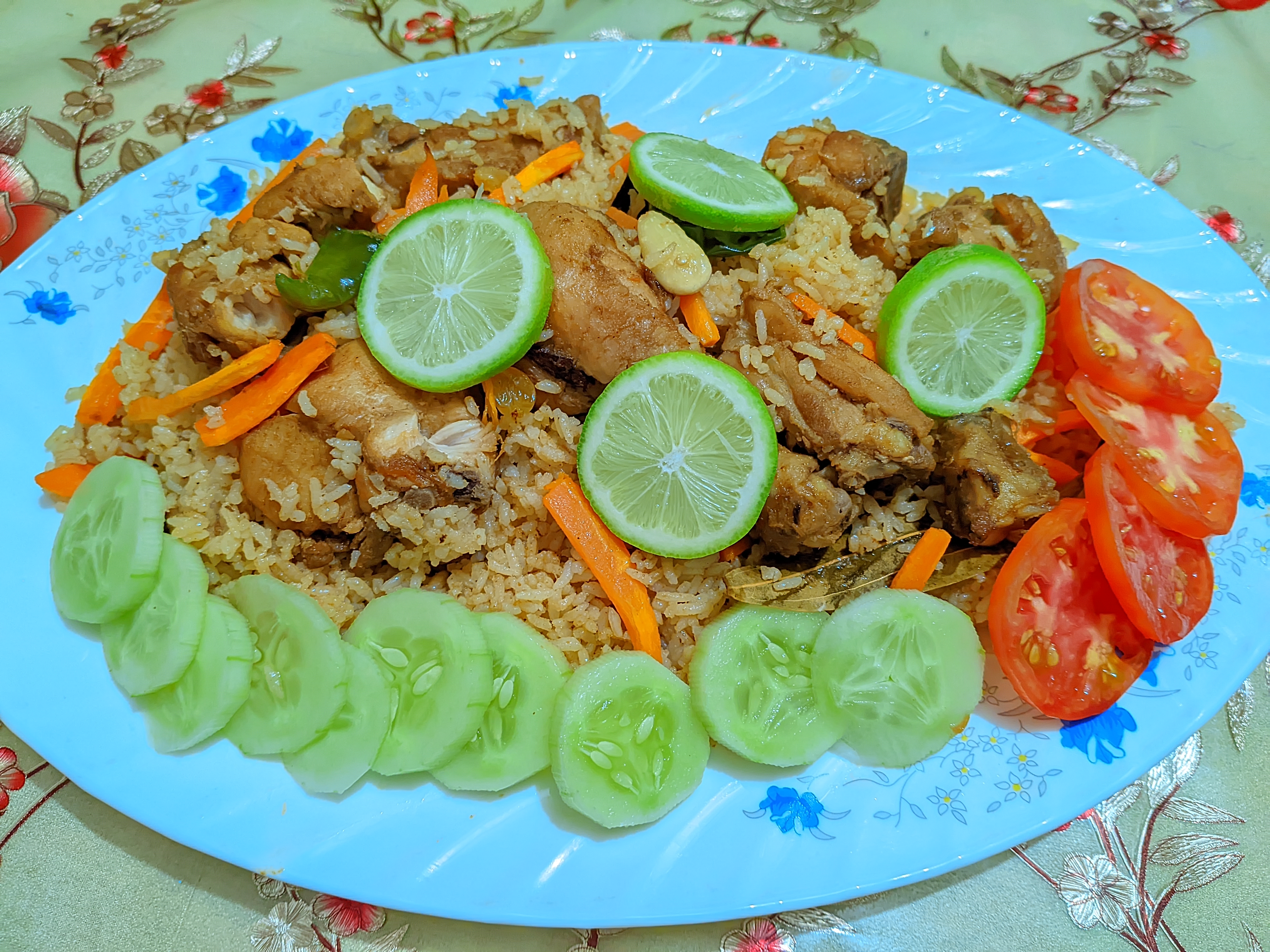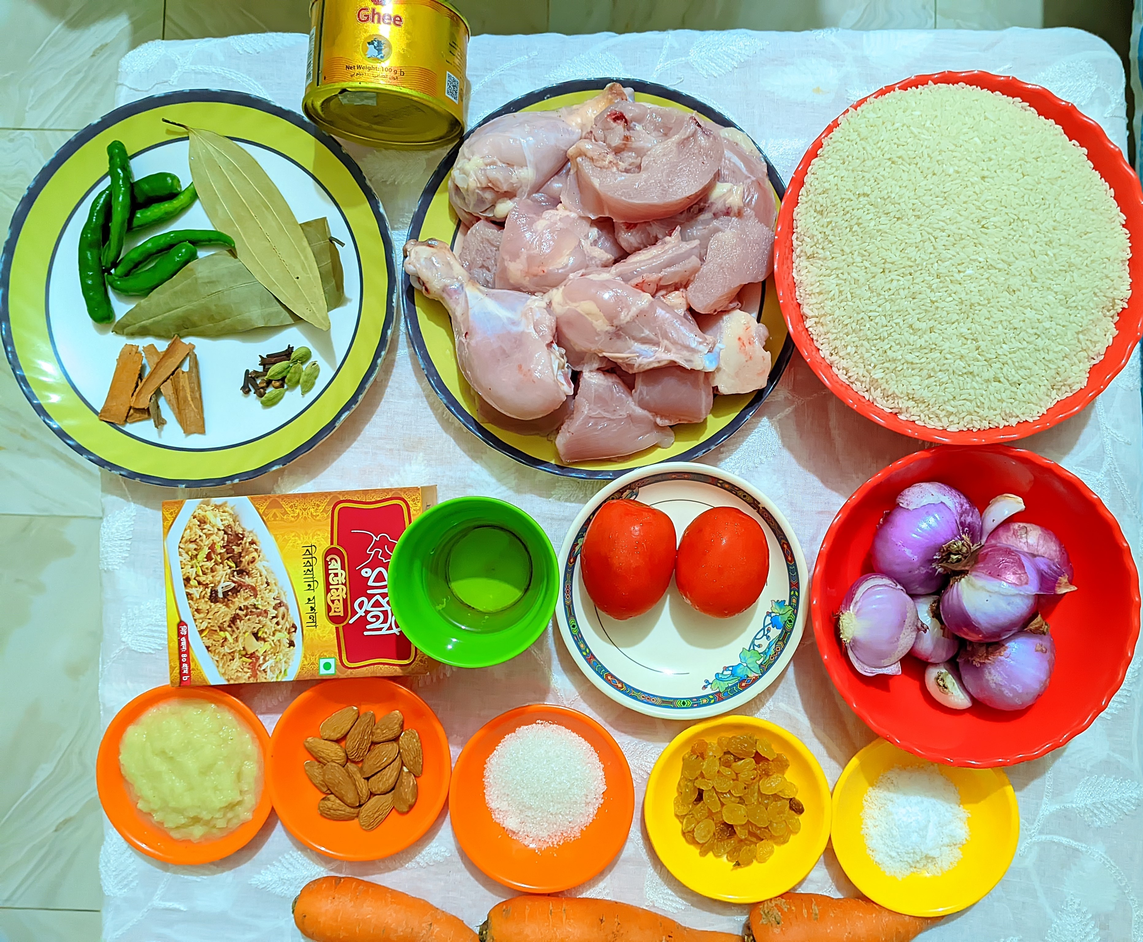 | Polau rice, chicken, biryani masala | Polau rice, chicken, biryani masala |