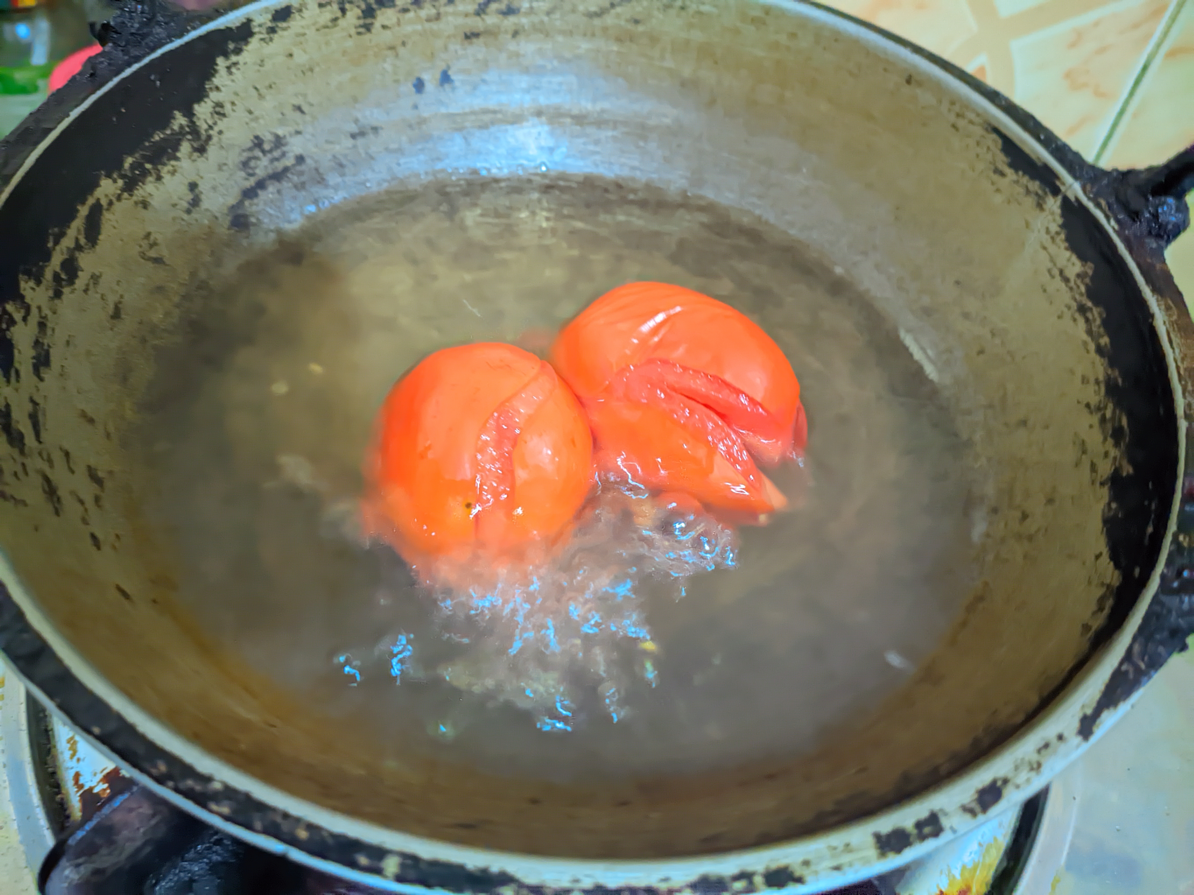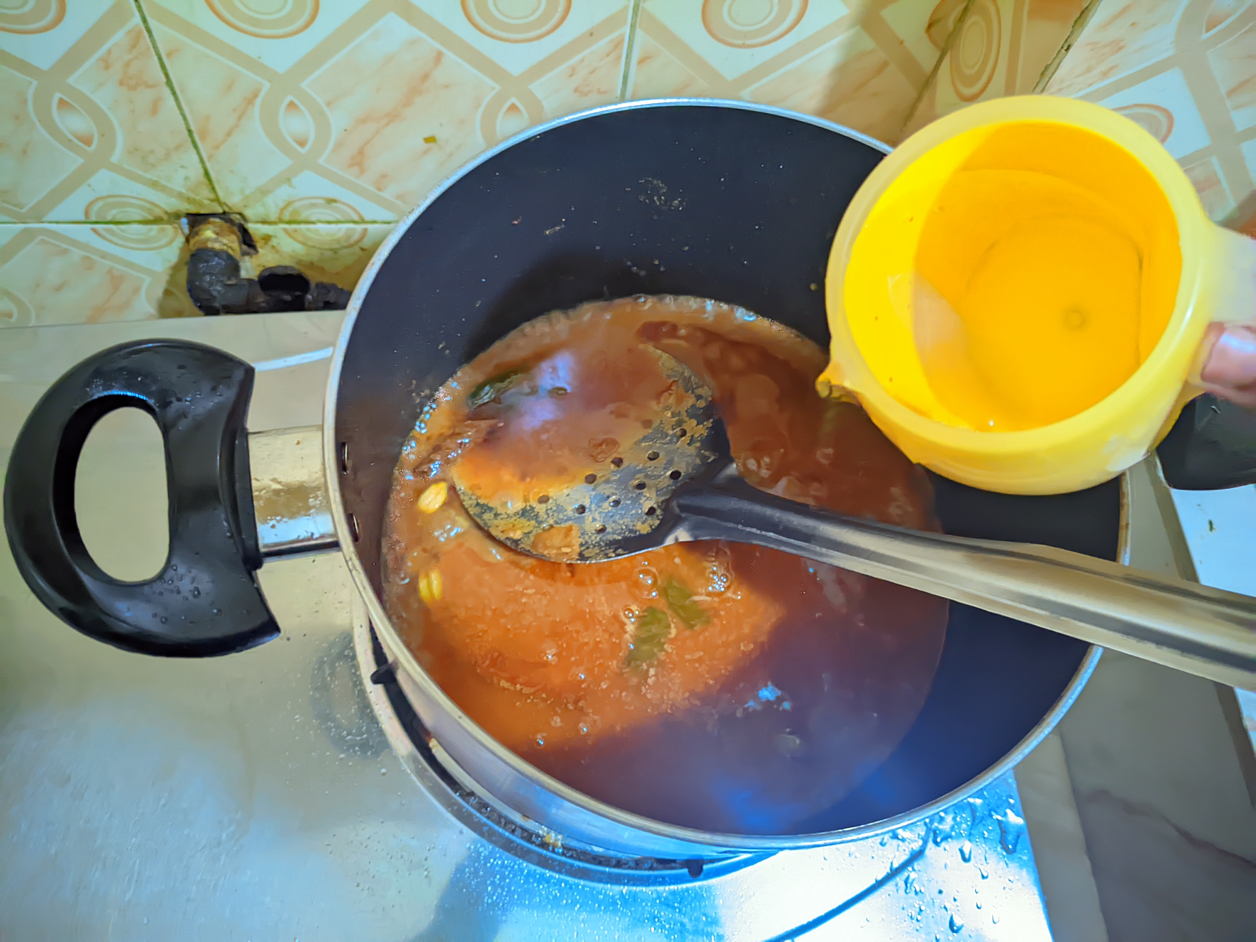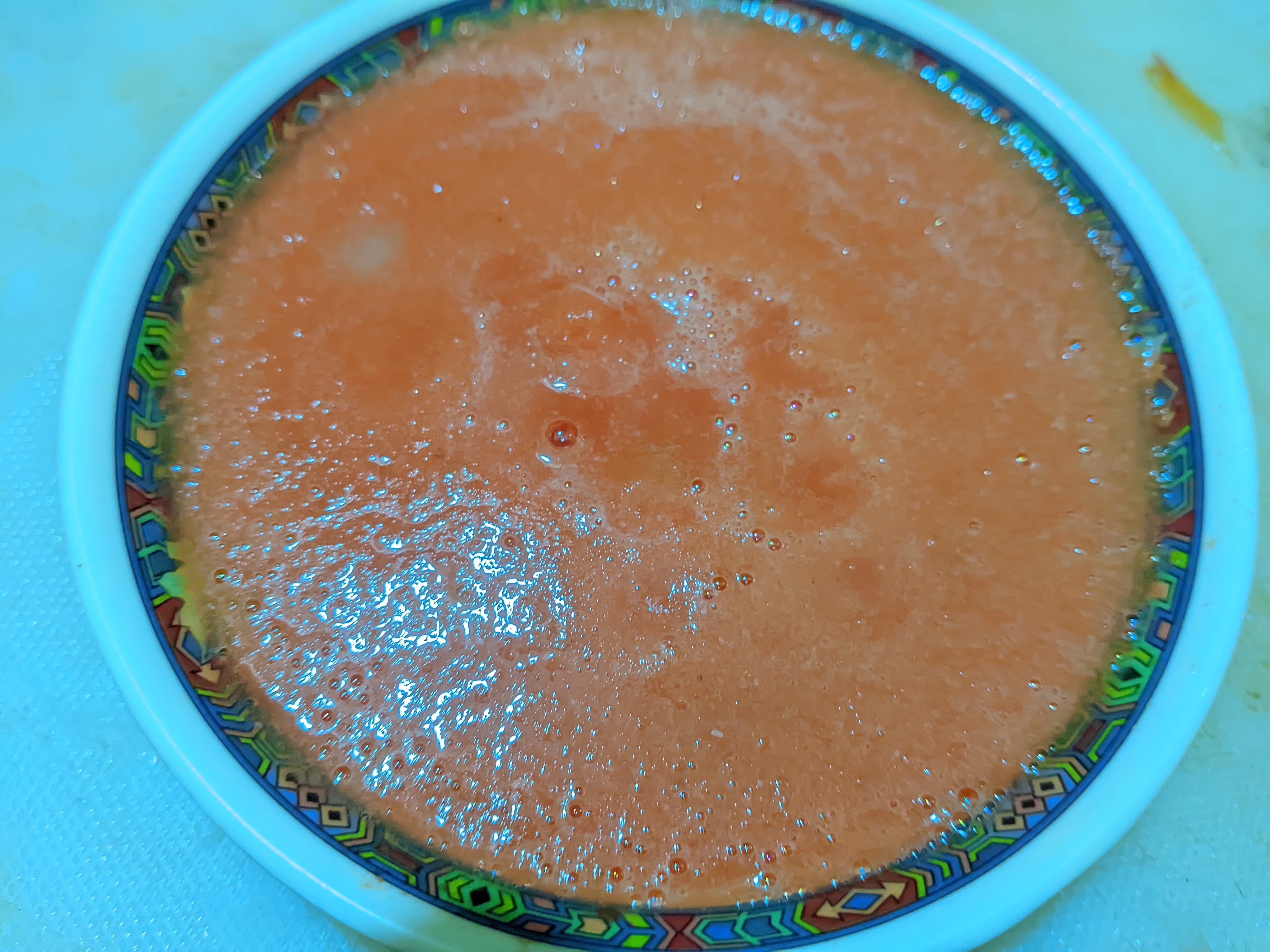 - When the tomatoes are cooked, I blend them with the help of a blender and put them in a bowl.