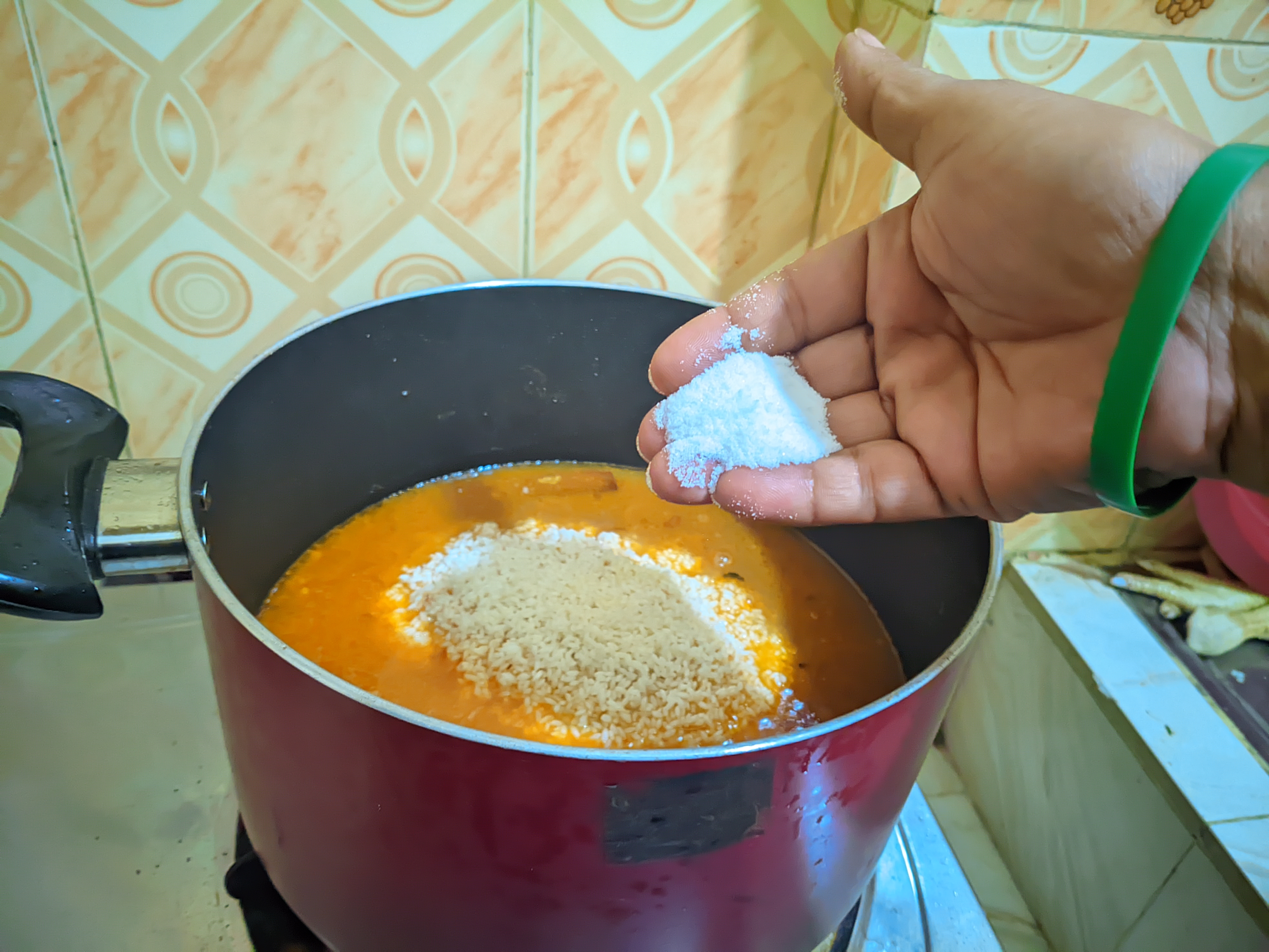 - Keep it in the stove for 20-25 minutes on medium heat. During this time, the rice will be cooked and the water will dry, and the hair will become neat.