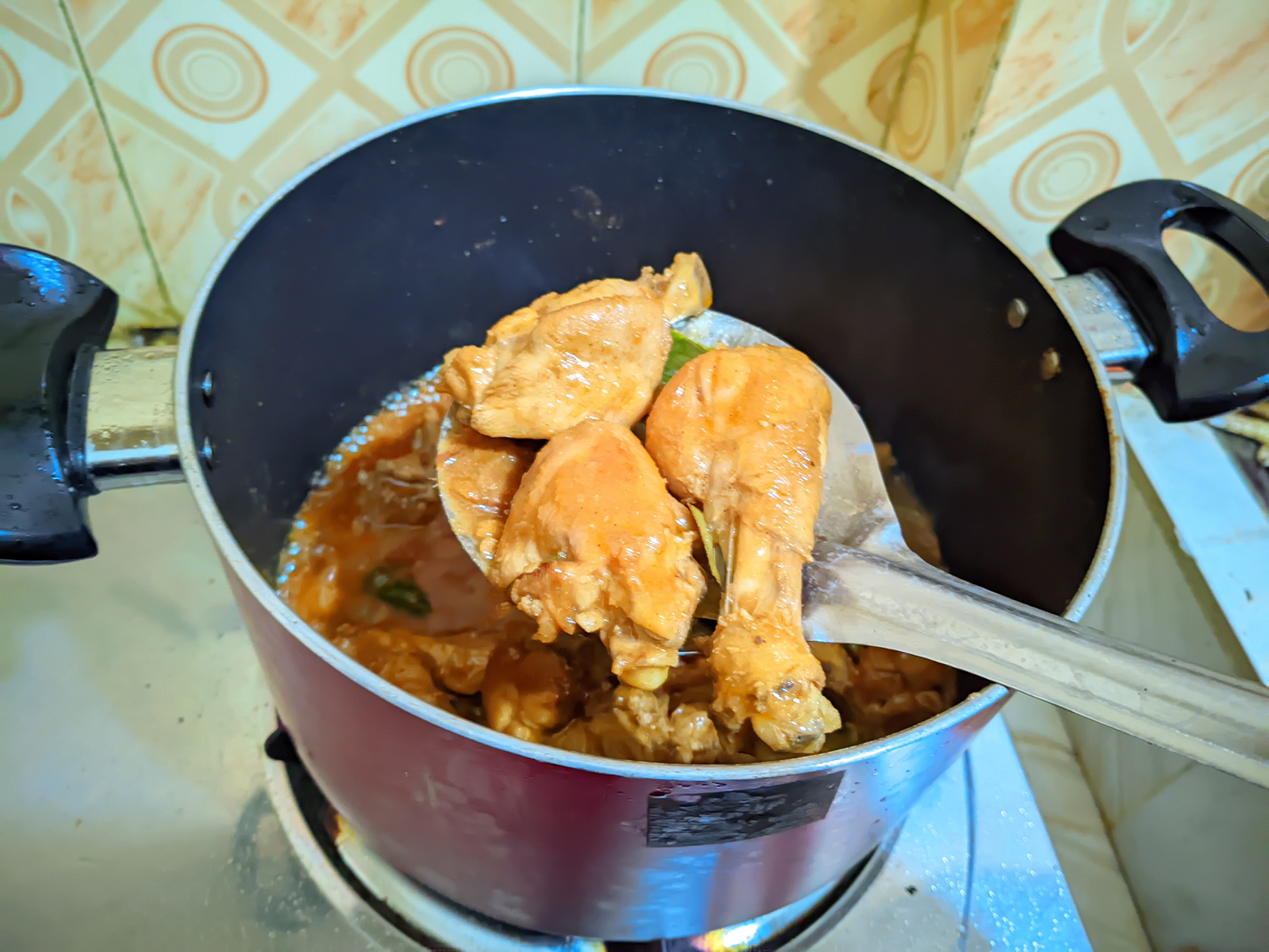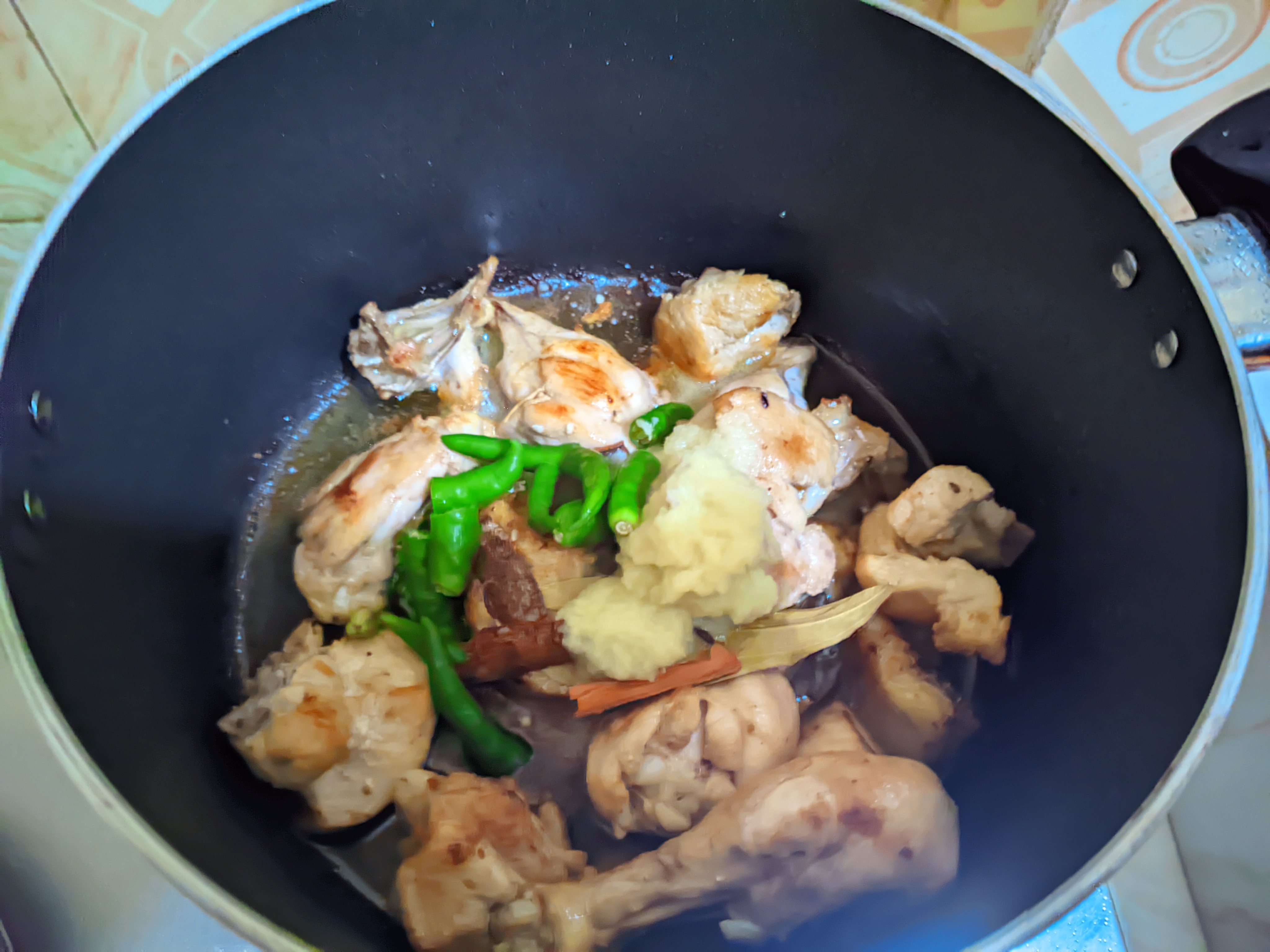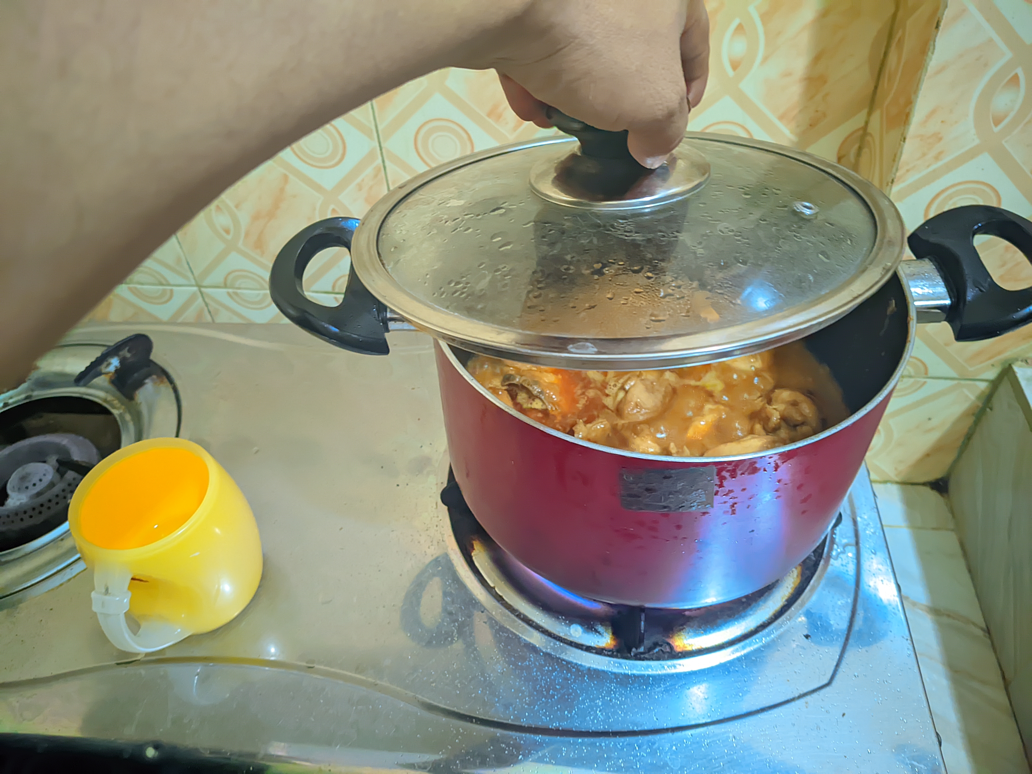 - After a while, I stir the meat so that the spices can reach all parts of the meat.