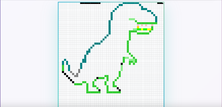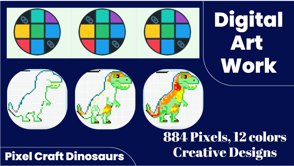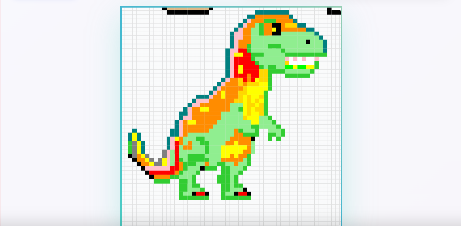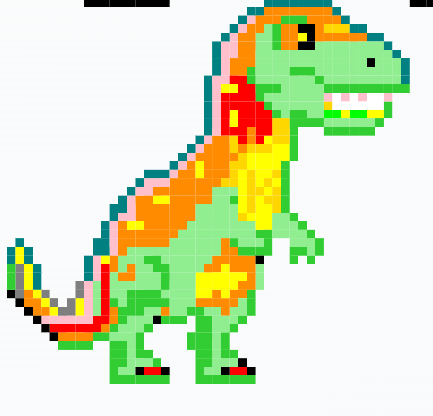 SourceIt took me two days to make the dinosaur, and in these two days, I tried my best to make it the best. So on the first day I used 552 pixels, and then on the second day I used 332 pixels. In this way, I have completed my design using 12 colors. I hope people like this design.