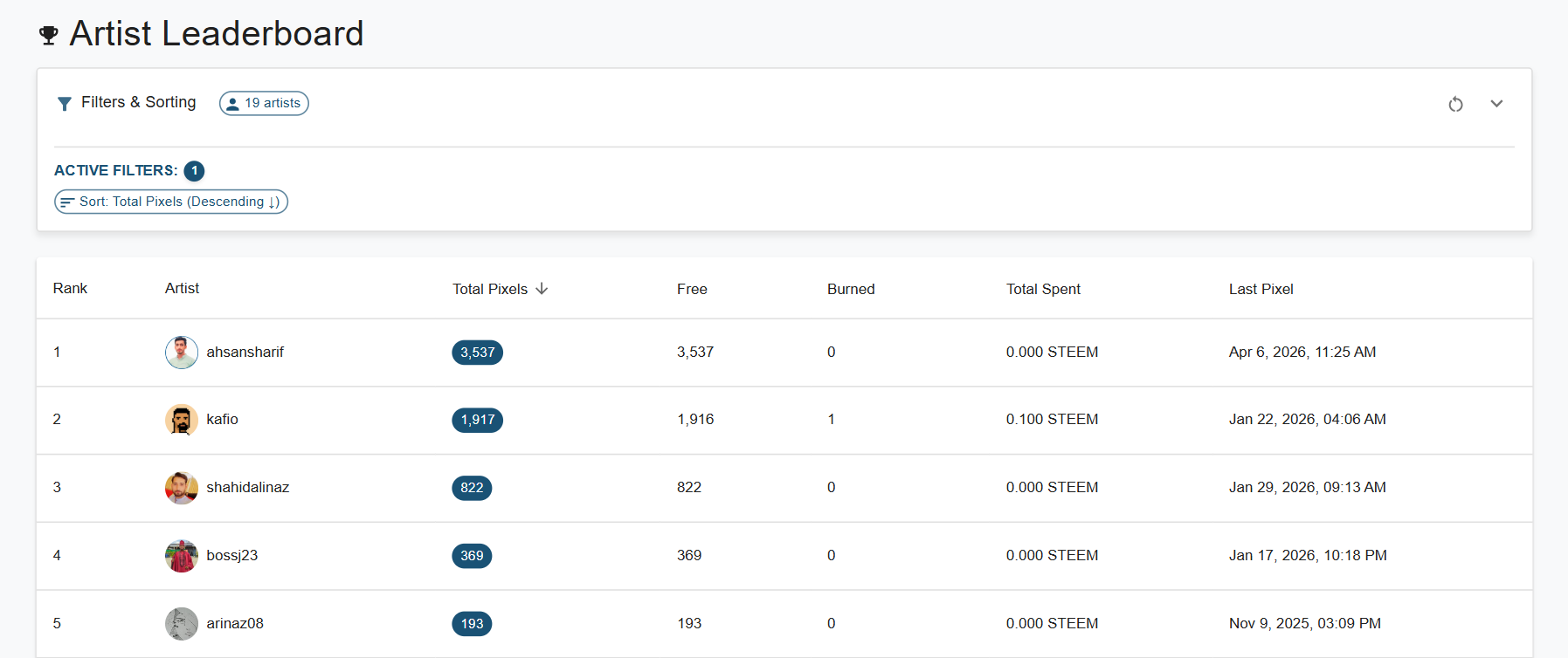 All these things have benefited me, and I have risen to the top ranking in the leaderboard. I was already in first place when I used 2100 pixels, but I have worked on it for two more days, and my total number of pixels that I have drawn in this game has reached 3537, all of which are in free mode. Thus, my ranking has reached first place. I was able to achieve my first position in the leaderboard.