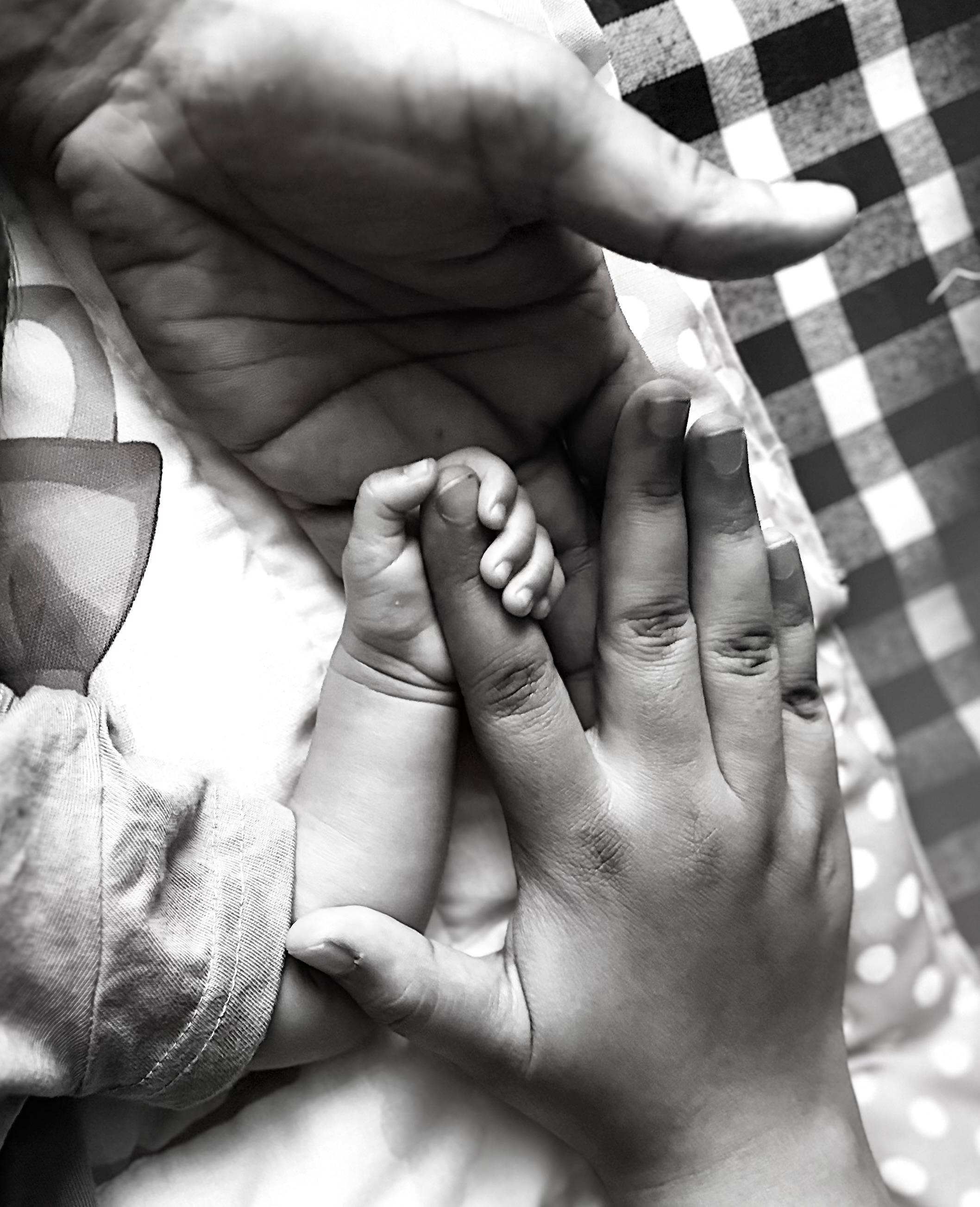 Nighttime became the most peaceful and emotional part of my day. After dinner, I spent some quality time with my daughter Rumaisa. Children bring a different kind of calmness into life, especially after a busy day. I noticed how beautiful the flowers looked under the soft night light, and suddenly I thought of taking a black and white photograph. I placed my hand together with Rumaisa’s tiny hand near the flowers and captured the moment in monochrome style.