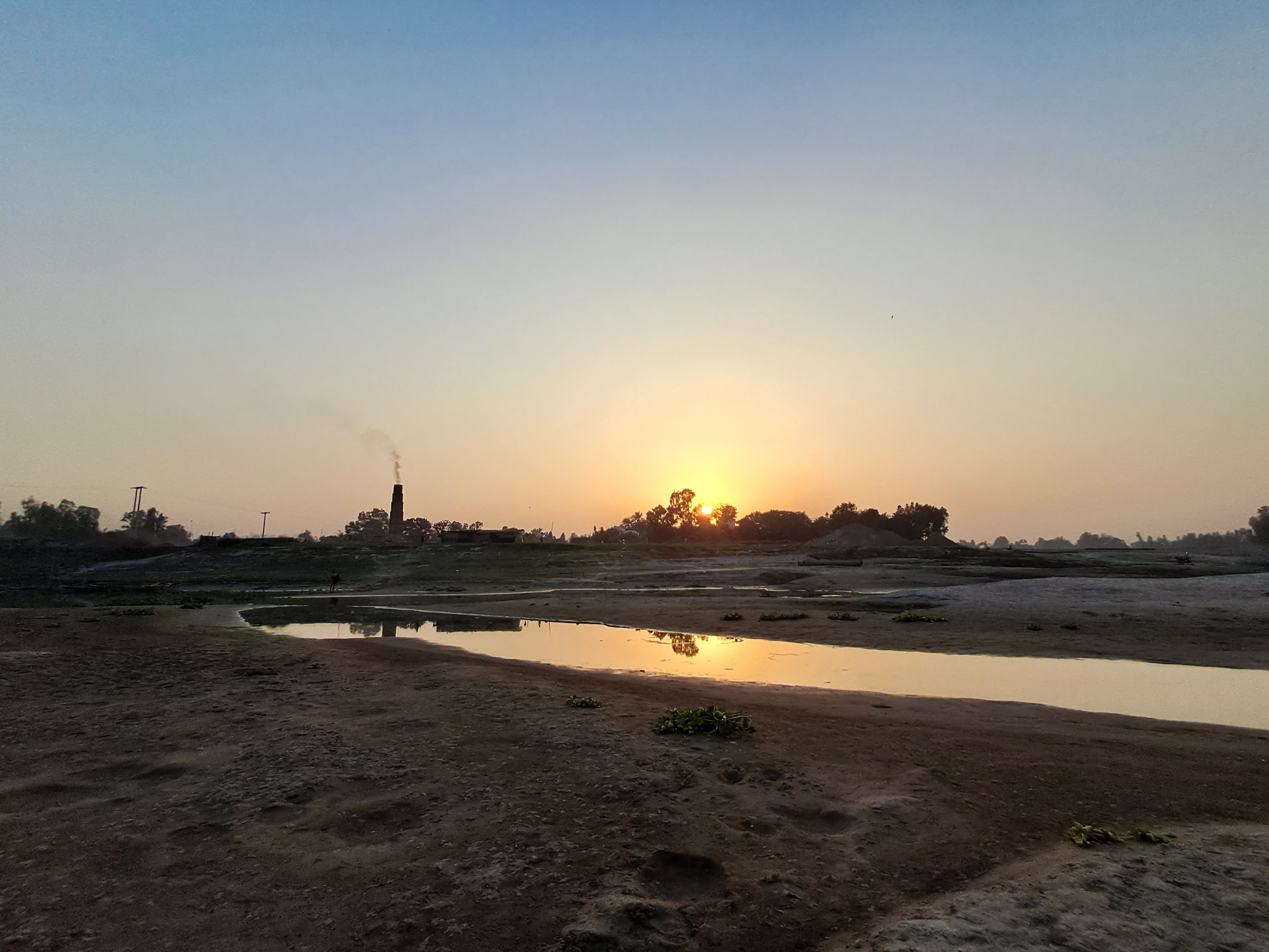 I spent my time in this bank and had a very beautiful moment, but you can't always see sand in this water. We went at such a time, it was a very beautiful moment, especially in the evening before. I like to take photographs in the evening before because it is called the golden hour. So when I went there, I saw a brick kiln on the left side and a river bank on my side.