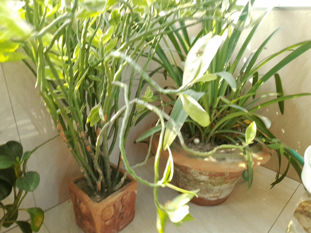 Finally I came up with a hanging plant rack that had a few more plants. I rearrange them.