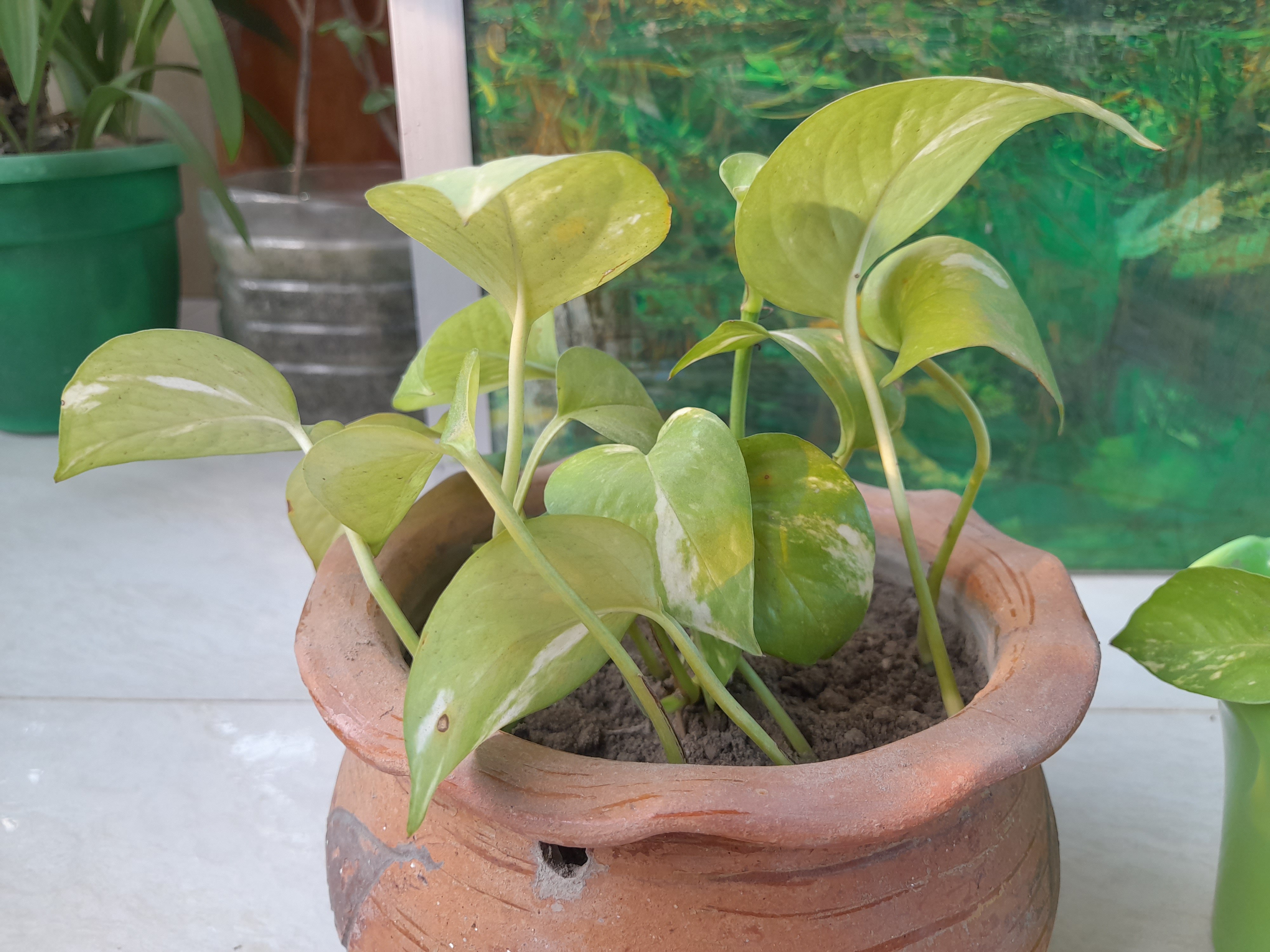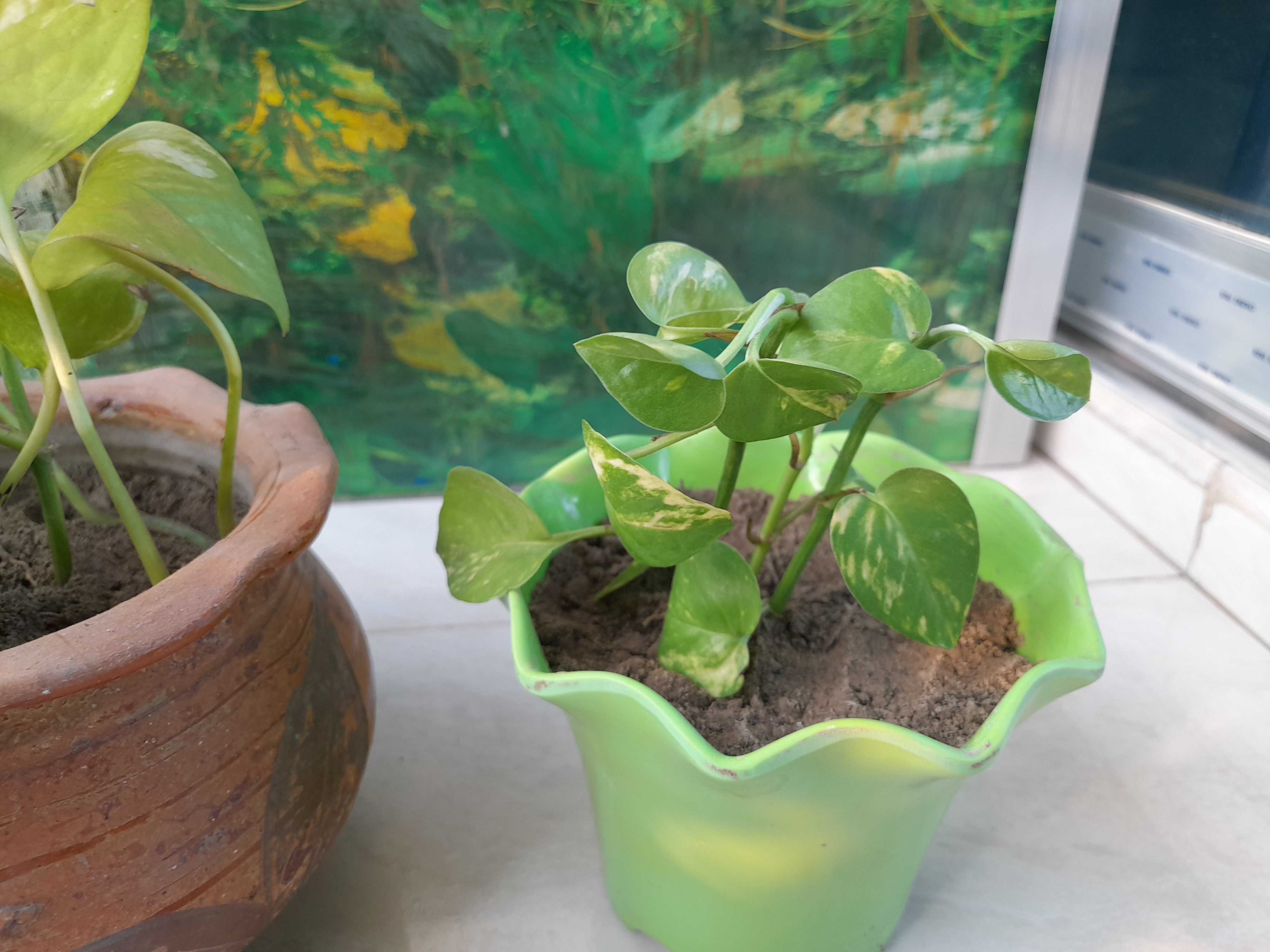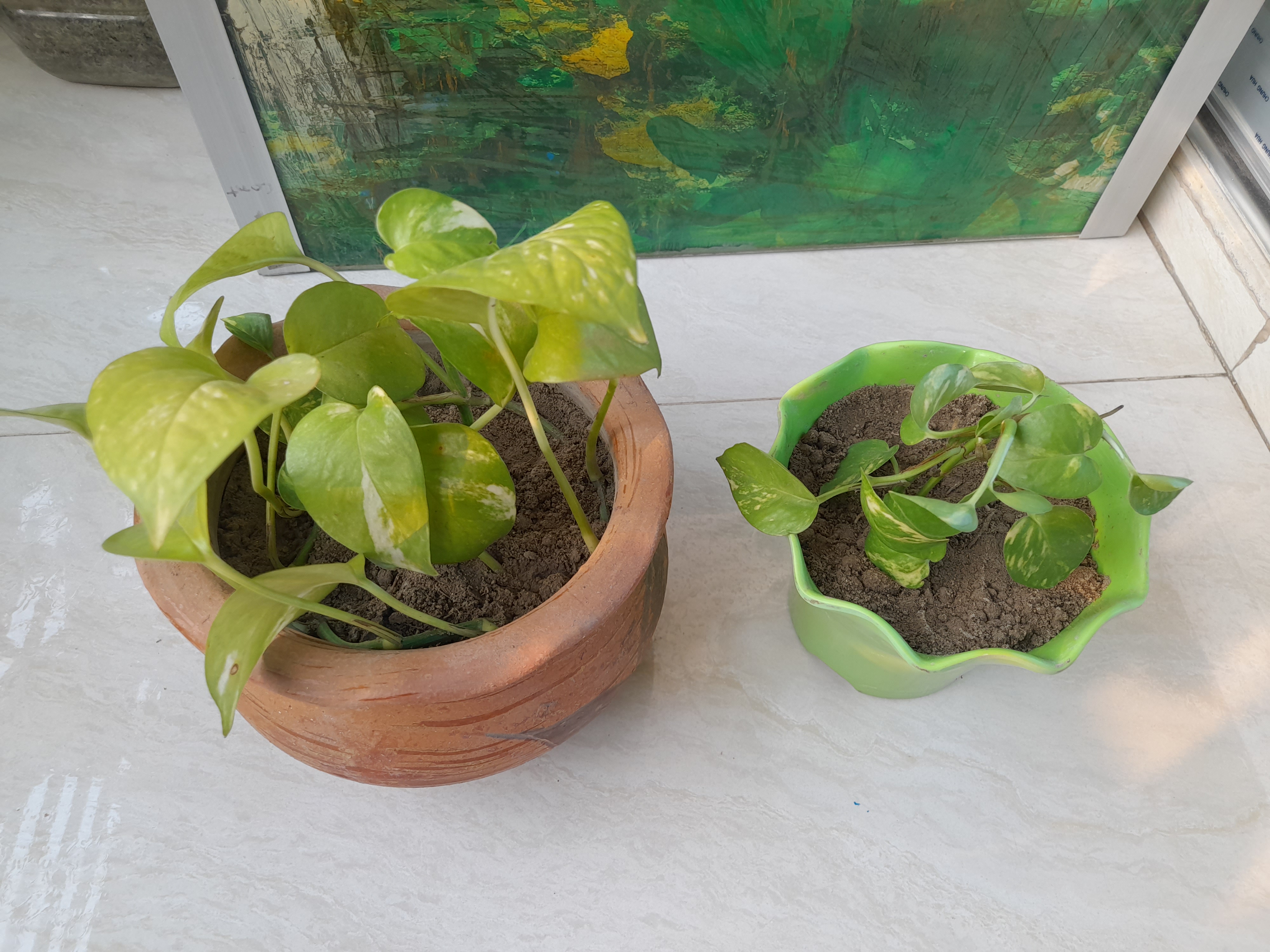 I moved my Chinese bamboos and cleared the area. I clean my balcony regularly so the dust here is relatively less. Also, due to lack of rain water on the plants, there was dust on the leaves, so I sprayed them with water. And after drying the balcony floor I put them back in place.