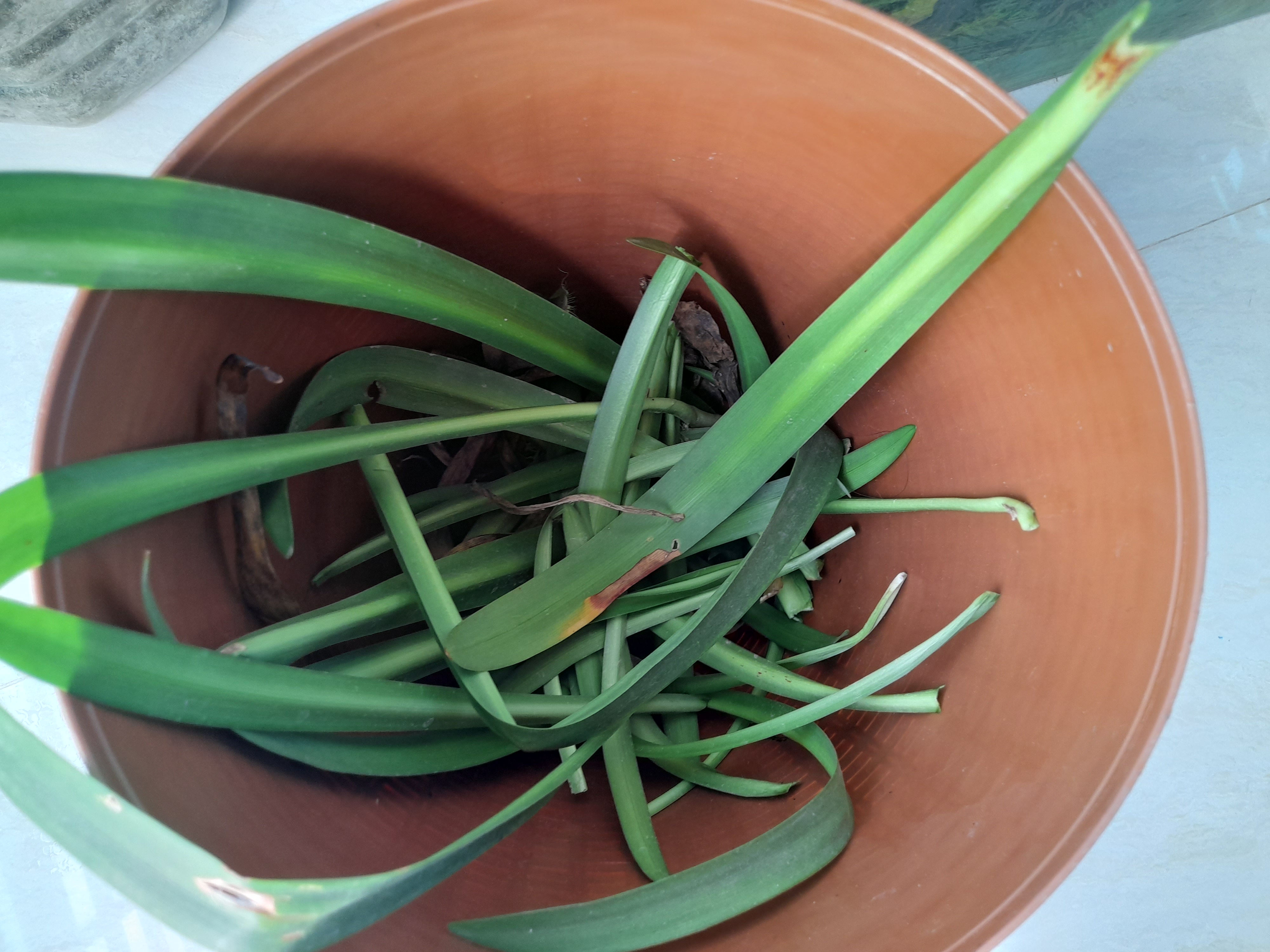 Now I will share with you this flower which is the main attraction of my balcony. Due to some problem the flowers are not blooming well. I am trying to resolve this issue. I have several types of lily plants in my balcony garden. It's time for this plant to bloom again. This is a spider lily.