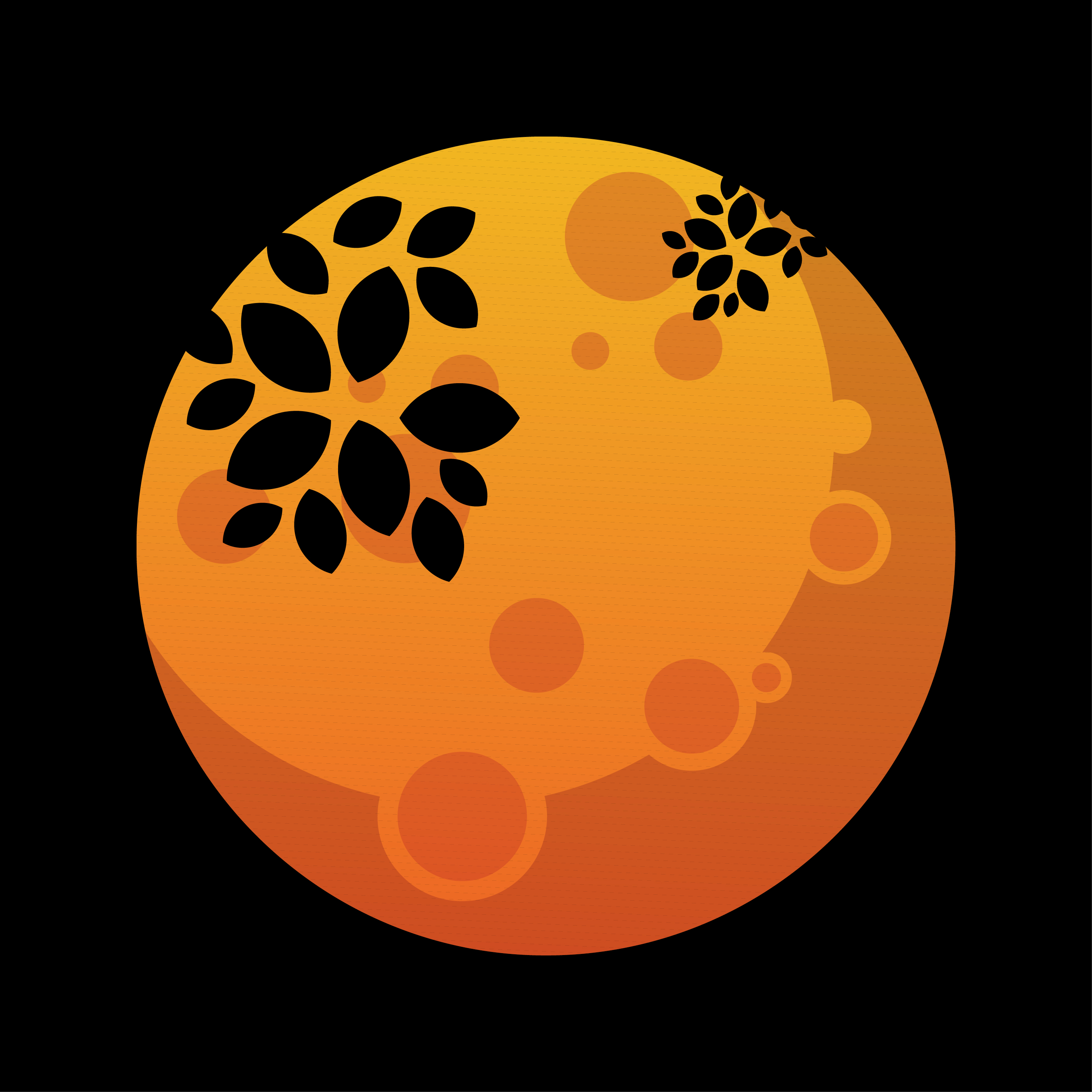 তারপর বড় চাঁদের মধ্যে আবার ছোট বড় কয়েকটি ইলিপস নিয়ে প্রতিটি ইলিপসে কালার গ্রেডিয়ান প্রয়োগ করে সুন্দর লুক প্রদান করলাম। এখন গাছ তৈরী করবো।
