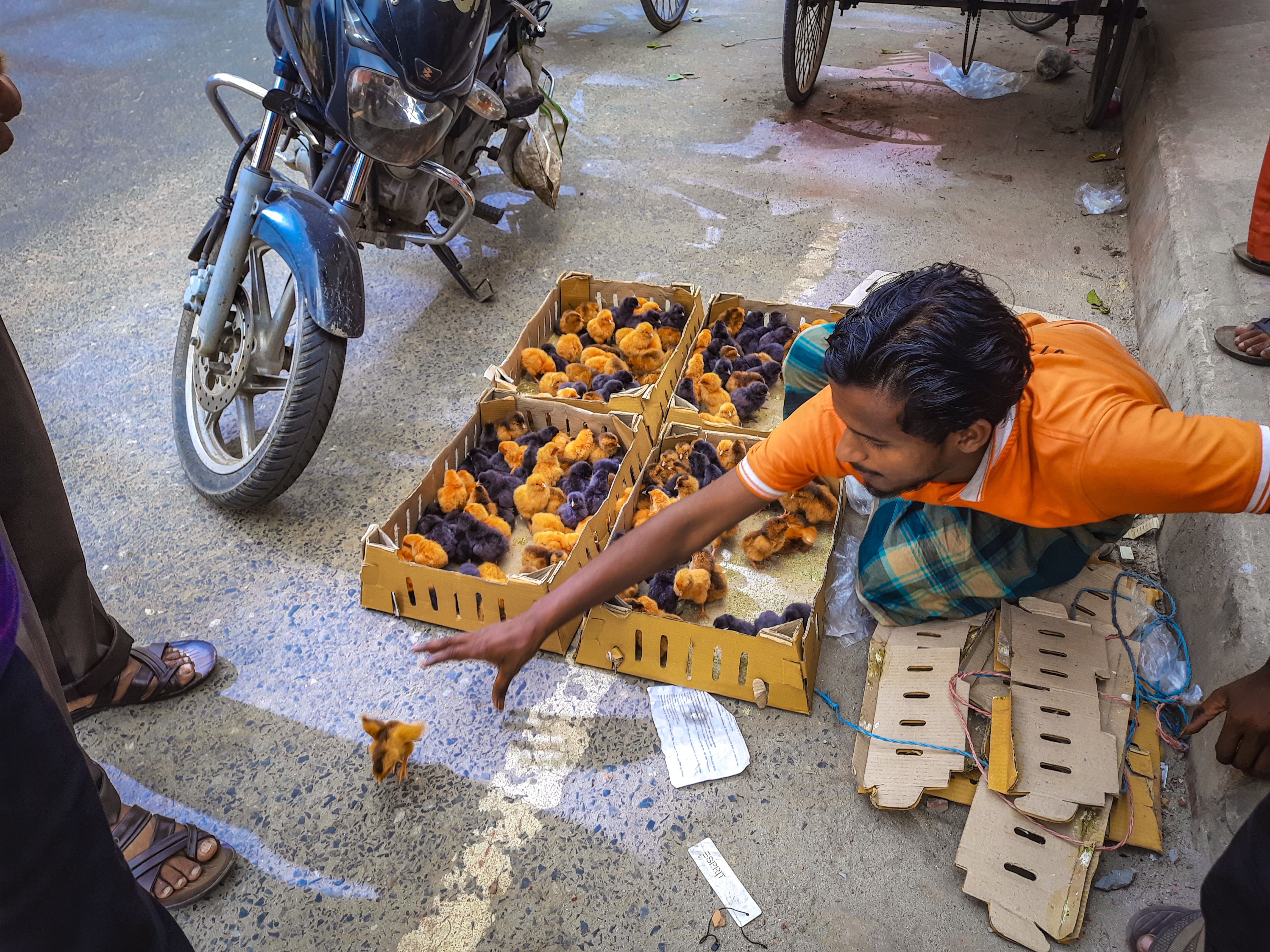 One day I was walking through the city. Suddenly I saw very beautiful colored chicks being sold on the street. Chicks are very cheap. I took a nice picture.