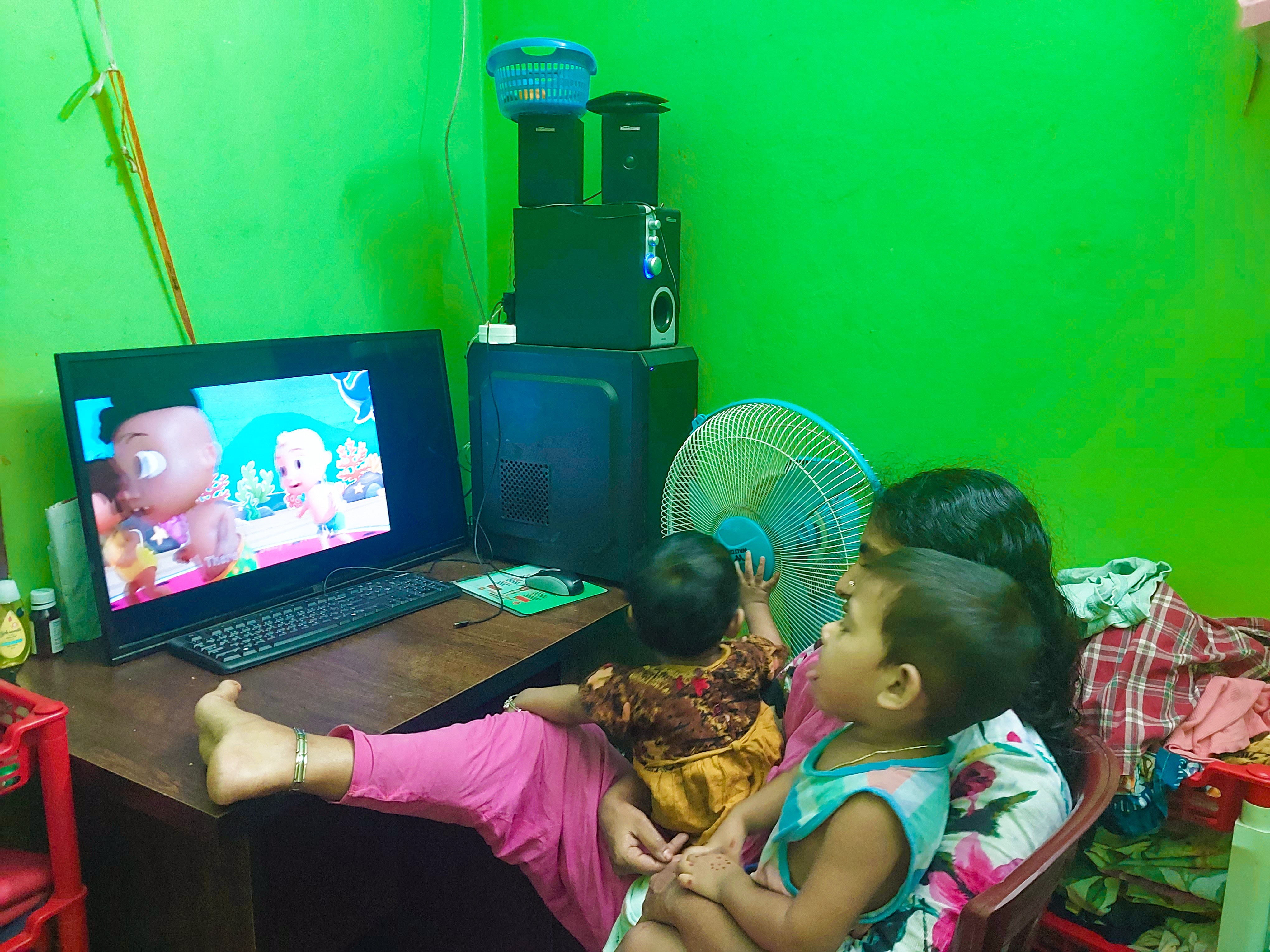 Me locationAfter spending some time in the office, I am returning home. I need to sit down at the computer and complete some graphics work. Returning home, evening fell. After having a light breakfast at home, I will sit on the computer. Then I saw my wife, daughter and my niece watching cartoons on the computer. I didn't bother them. After watching their cartoons, I sat on the computer and worked. At night I finished dinner on time.