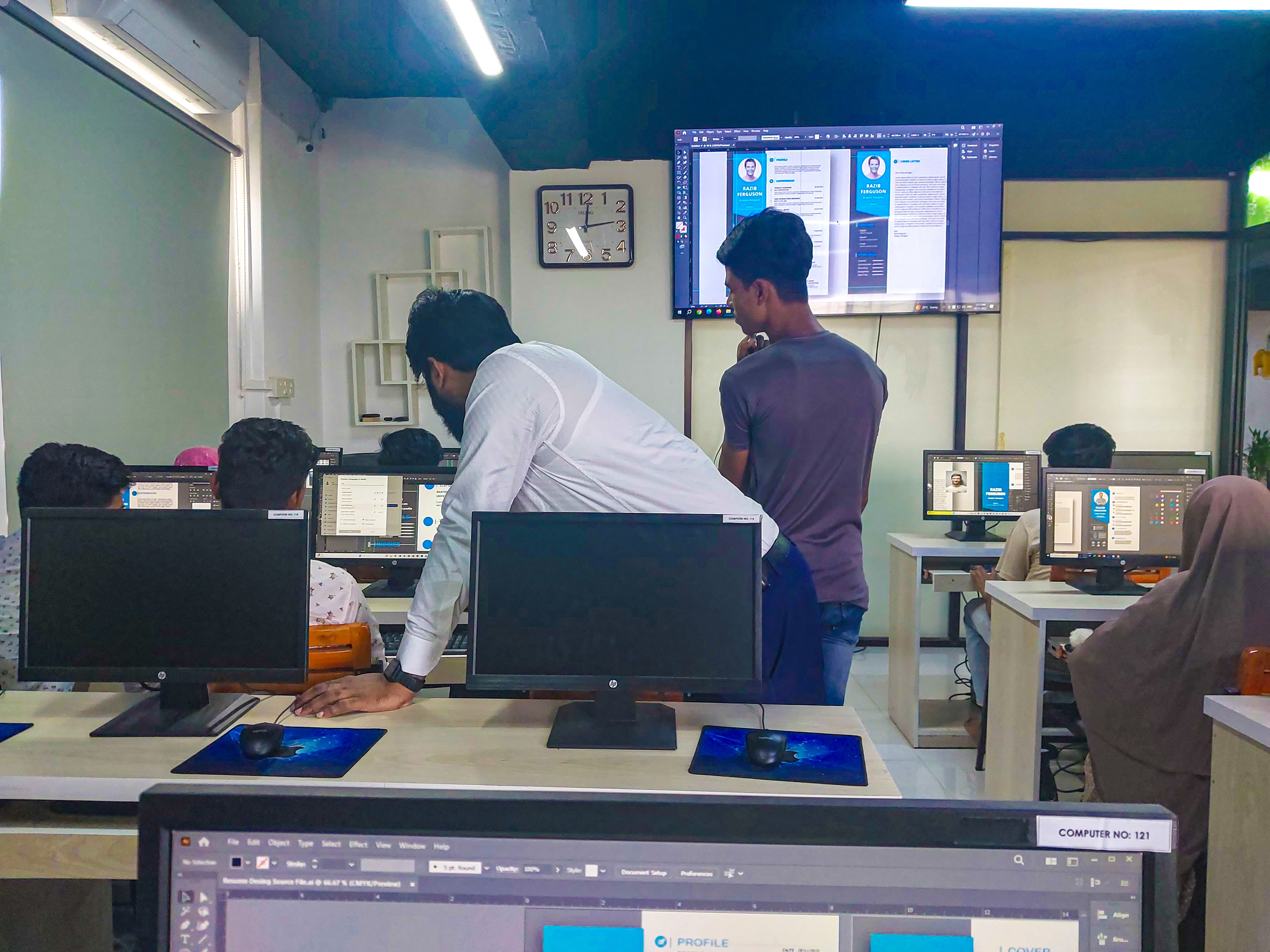 Tea chat with friends locationI have to get to class quickly. I left for class after telling my friend. I spent two and a half long hours in the class. In the picture you will see sir teaching his student very important task very nicely. Immediately I took a picture. Today we were taught how to design flyers. And it is an important tree in the world of graphic design.
