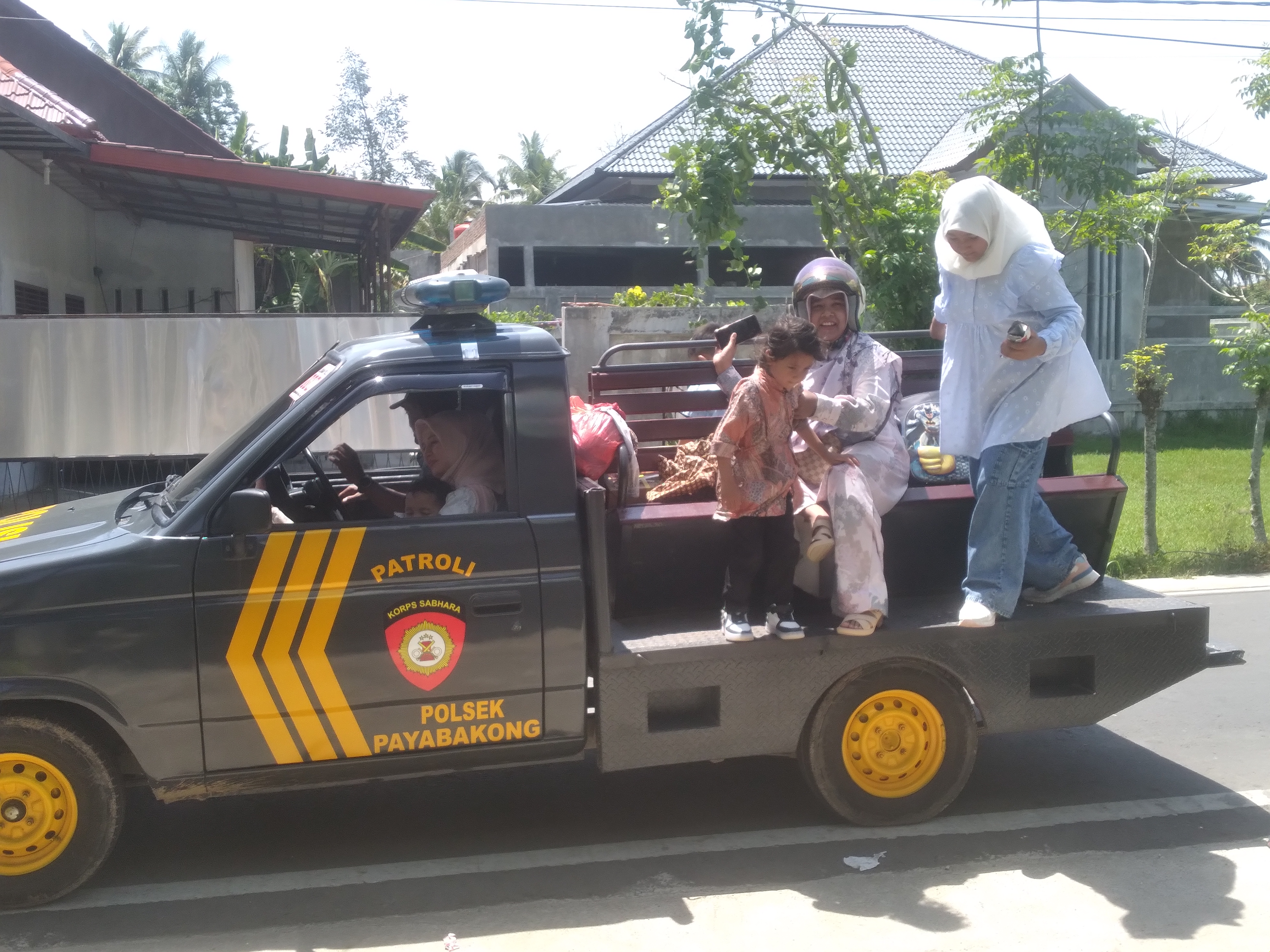 preparations were ready to leave at around 10.30, where my friends had gathered at the coffee shop waiting for me to go together, but suddenly my beloved wife called that she was on her way home from the village with her children - The child used the police car to wait for a while before I left.