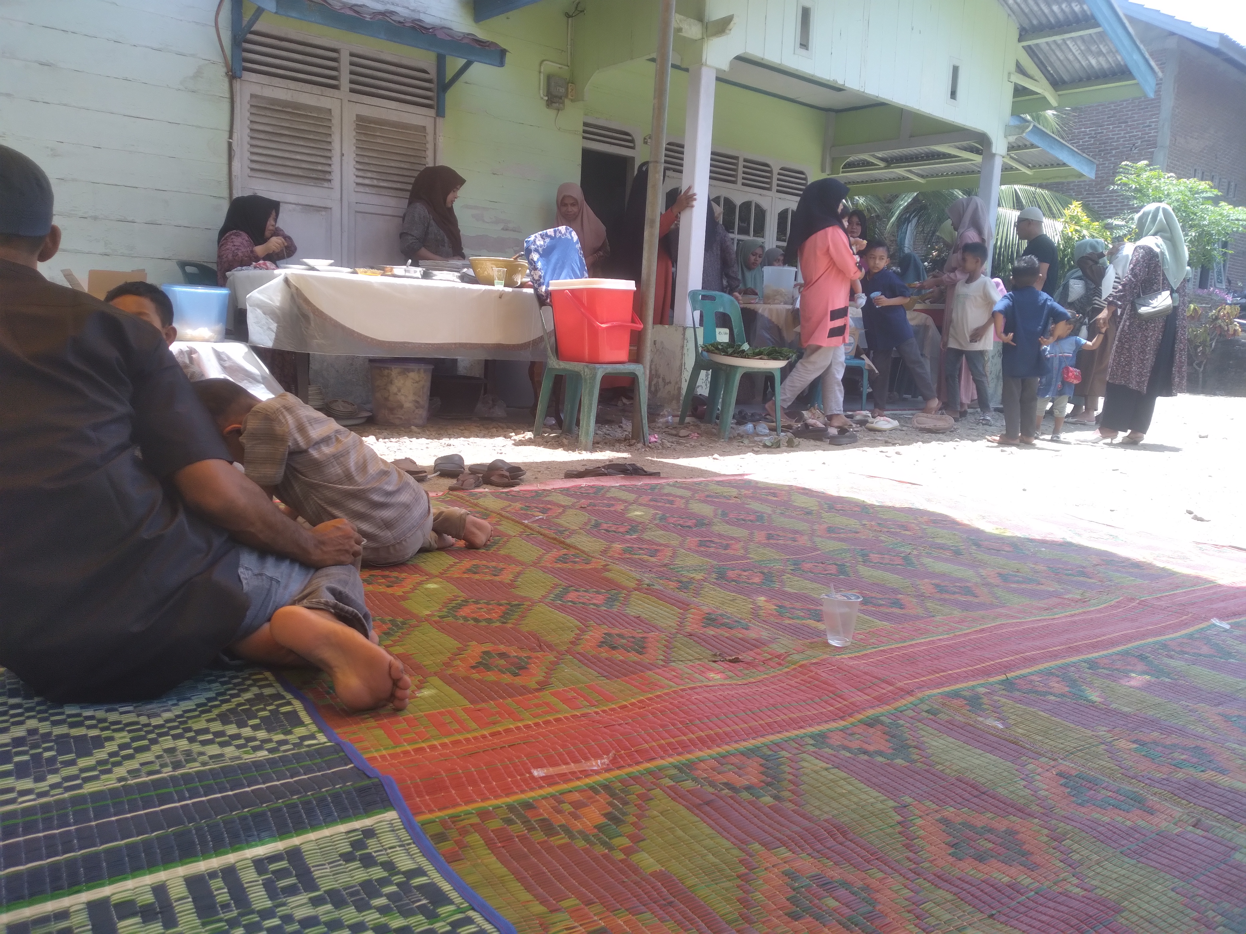 In the afternoon, after taking a short rest while waiting for Asar time, I visited a sick neighbor, who fell while painting the walls of his house before Eid, we didn't have time to visit him at the hospital, so we visited him at home. Currently, his condition still has a headache due to hitting a hard wall, and the man is still in pain due to sprains and fractures. Visiting each other at the disaster site is a form of caring for fellow relatives and neighbors who are experiencing misfortune to provide motivation for patience.