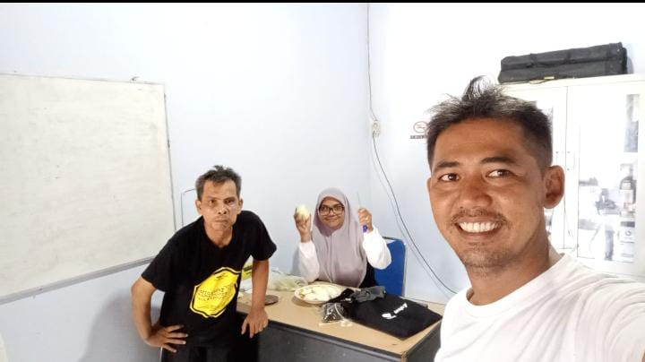 My colleagues and I, enjoying fruit salad with spicy sauce while having a lunch breakDiscussing the document over and over again, looking at the document checklist, and finally, the rice is ready to be served