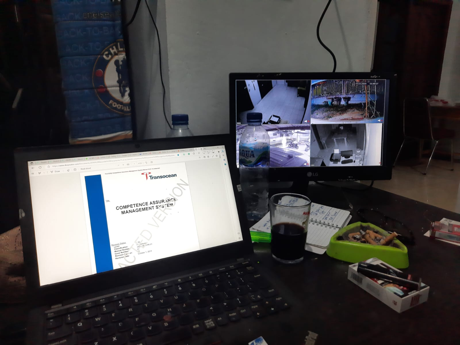 My messy office with a sample of the document on the screen that I need to learn from, and then revise my own company document accordinglyOne after another, my colleagues arrived at the office and directly open the laptop and computer to start their task, and we talk about the business while preparing the document. I check them one by one to ensure their correctness and discussed them over again.
