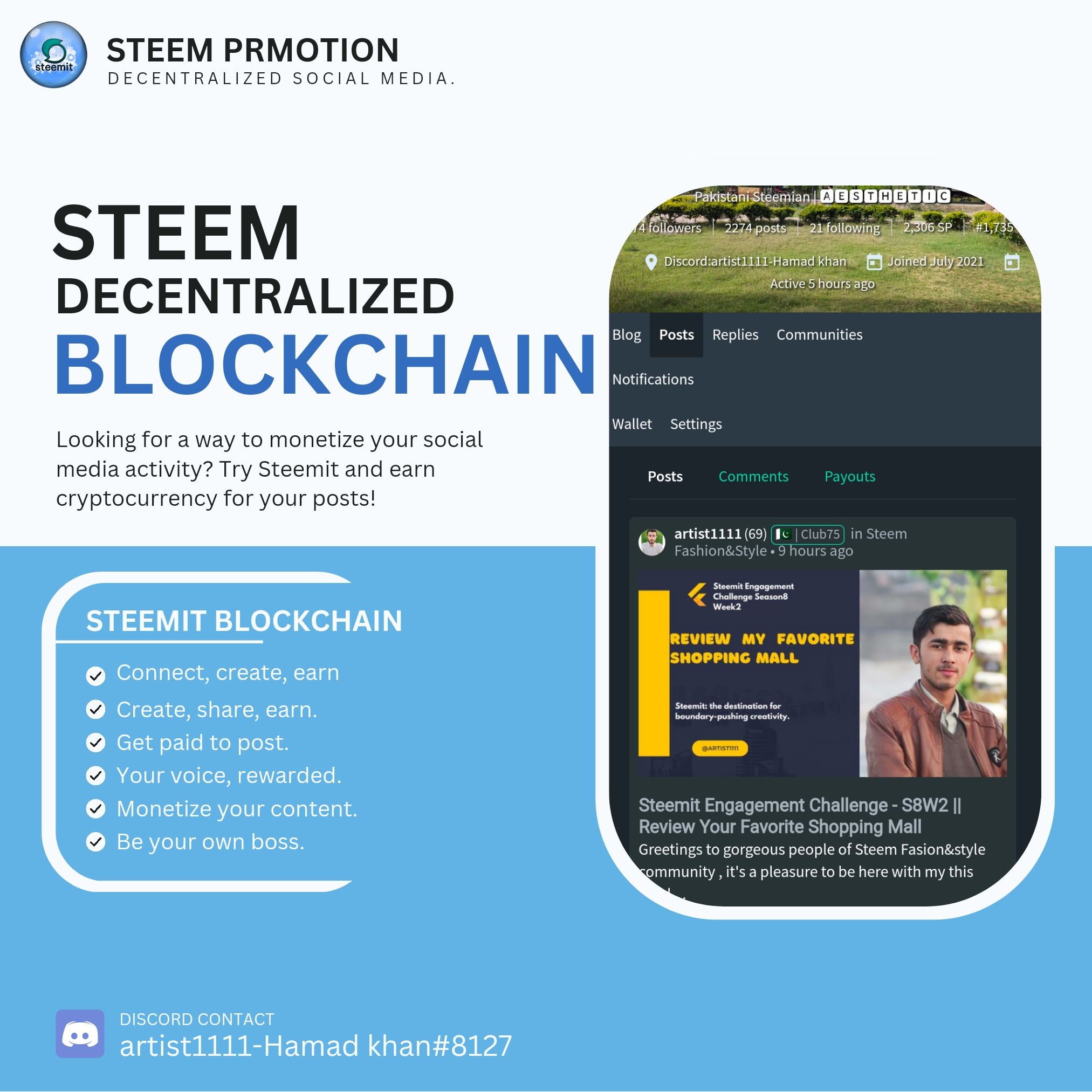 Article : artist1111 -- "Steem promotional campaign on social media's platforms"