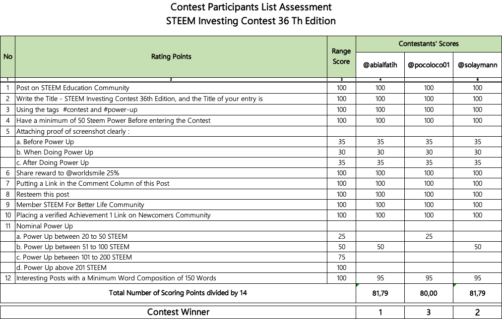 All entries will be judged by the jury: @heriadi and @miftahuddin by referring to the table below :