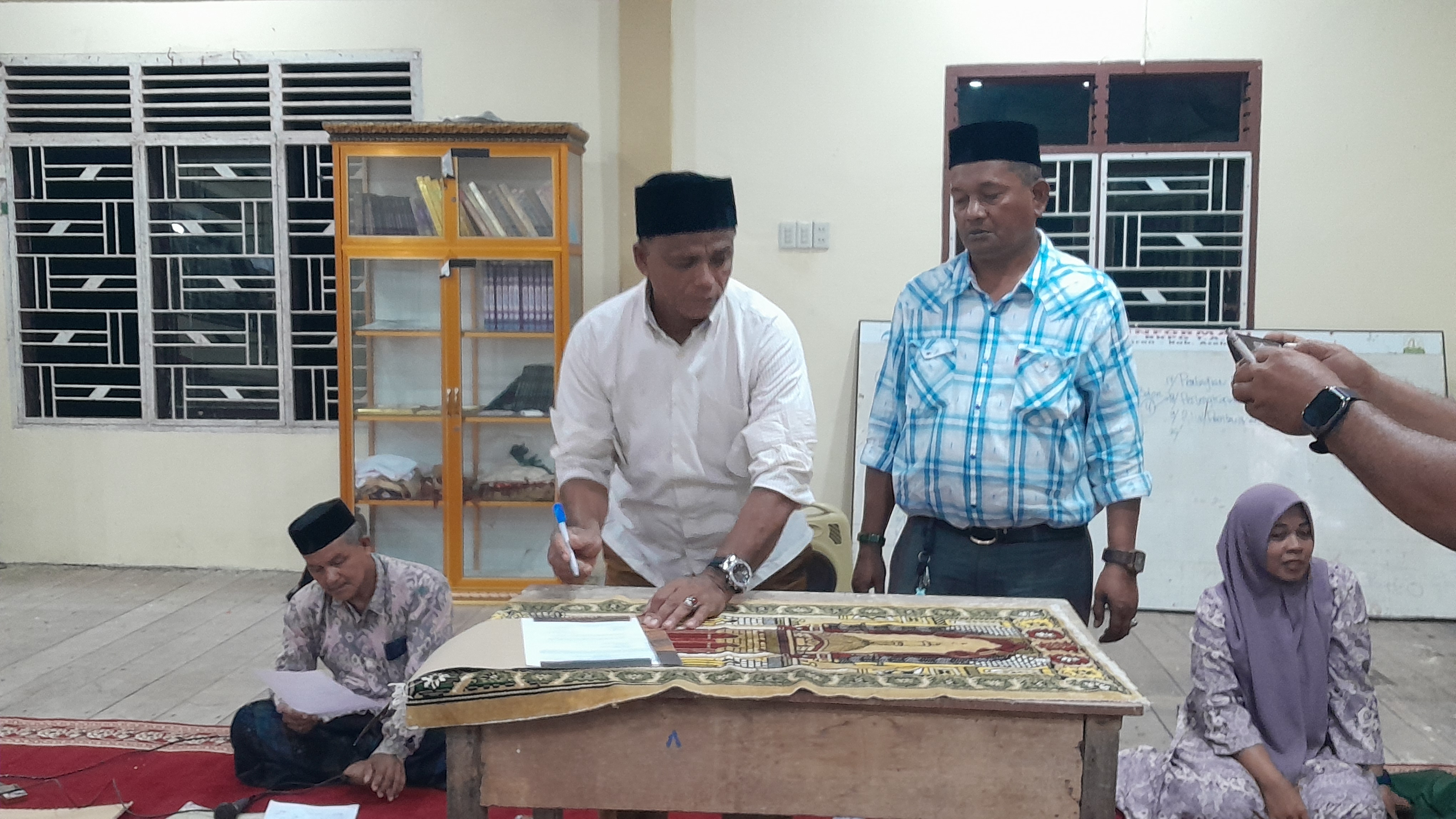 Begi pula ada lepto dan haefon yang di untuk operator gampoeng, begitu ada satu haefon untuk geusyik begitu pun kursi tenda teratak dan juga lapek meja, pada malam hari ini semua nya di serahkan kepada bapak geusyik baru, seperti yang aku mengatakan tadi dan di saksikan oleh semua tuha puet di ikuti beberapa masyarakat gampoeng setempat.