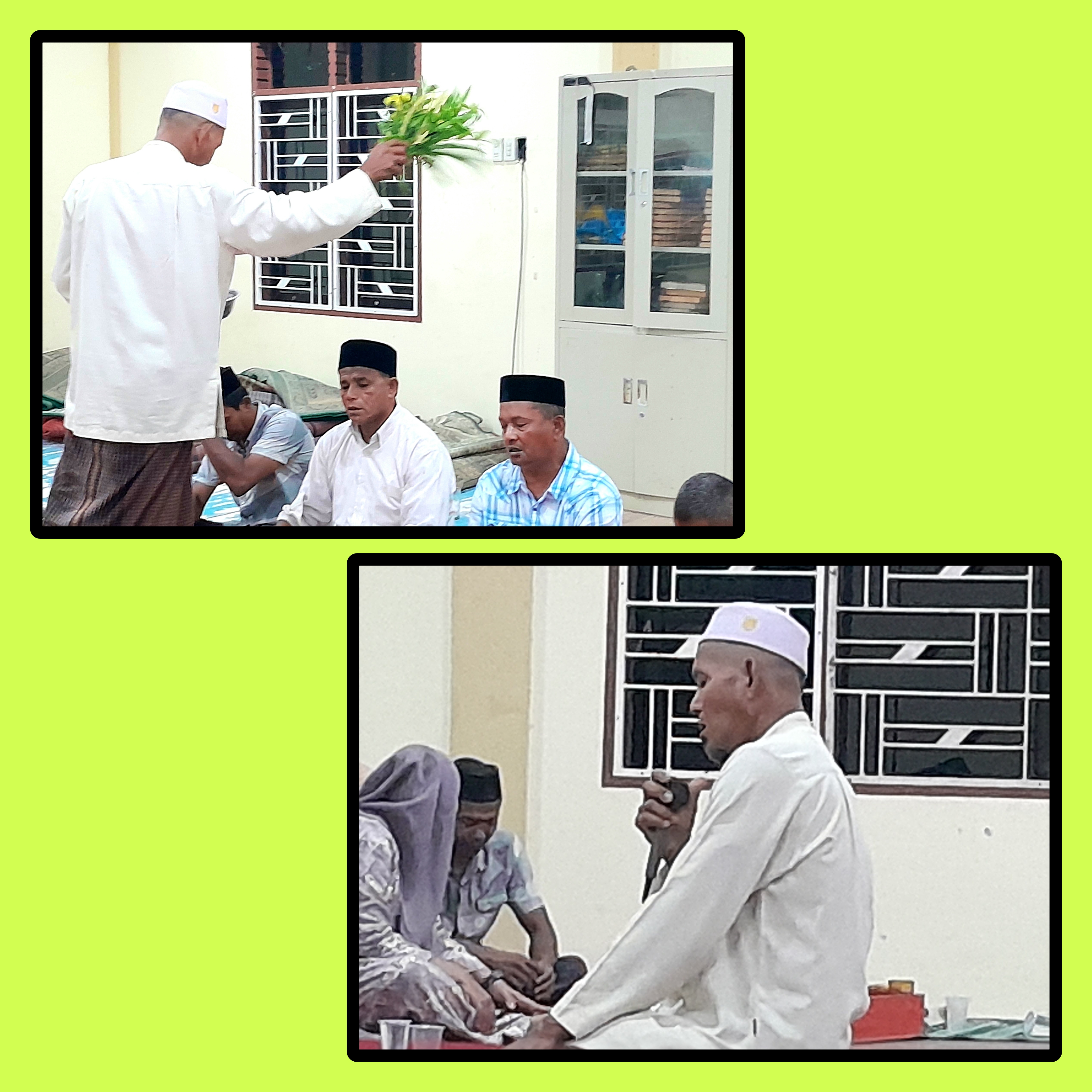 Nah yang terakhir acara serah terima antara geusyik lama dengan geusyik di pimpin oleh pak imam, yang terakhir acara nya yaitu ketu pak di peusijuk oleh pak imam gampoeng, dan dalam acara peusijuk diiringi dengan salawat nabi, dan sekalian dengan doa nya.