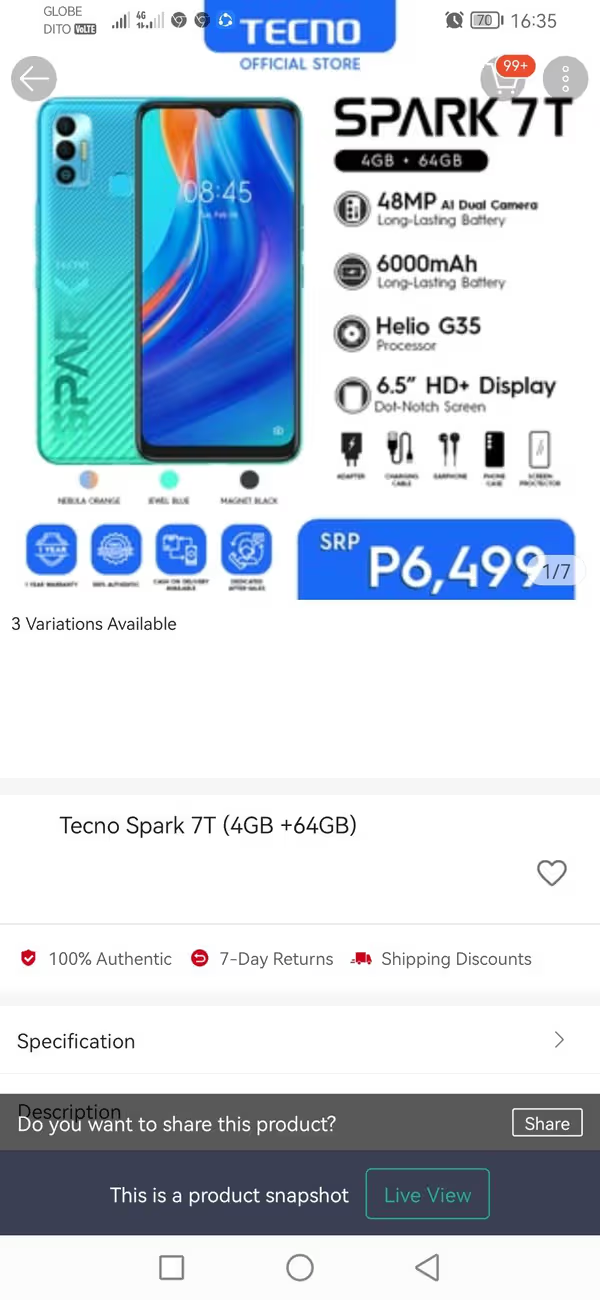 Huge Discount! From 6,499 down to 4,403 pesos price on Phone
