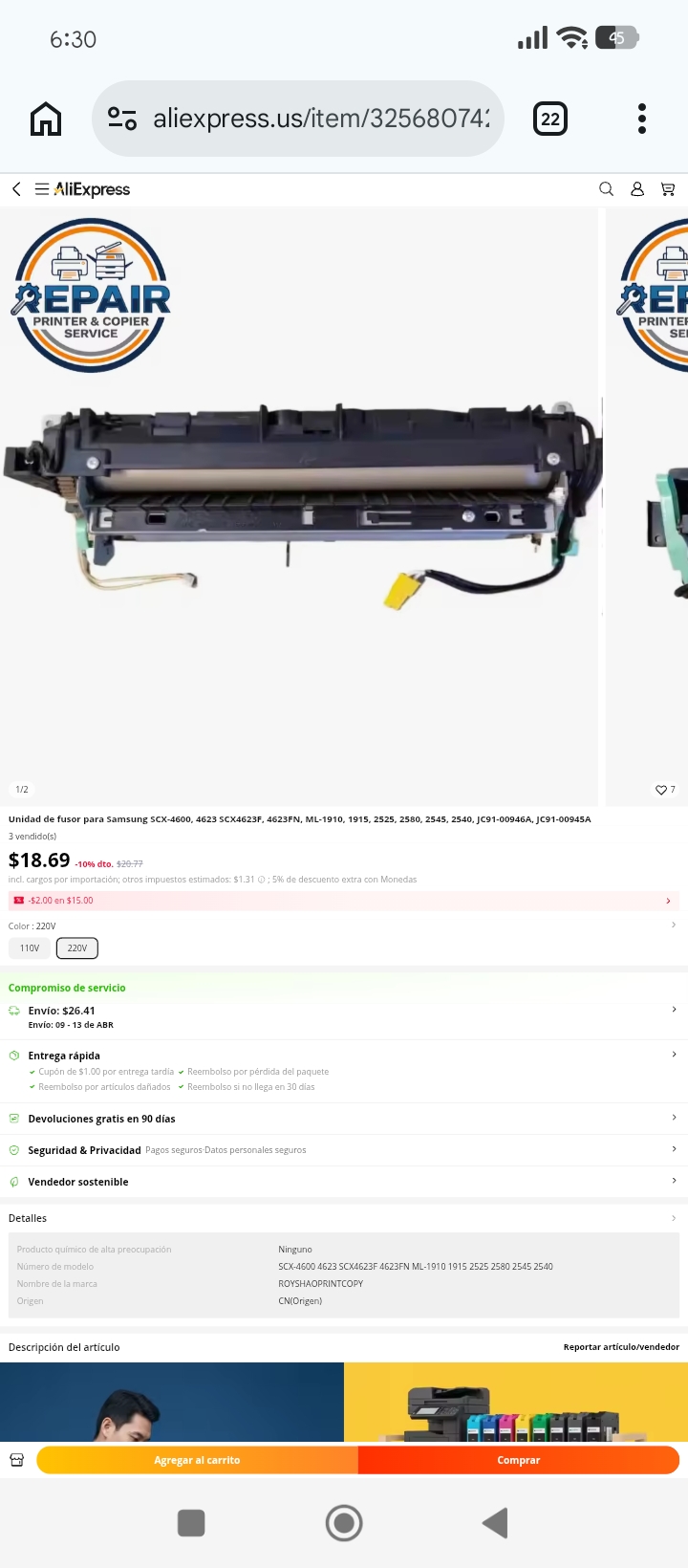 Que bueno que aún tienes la posibilidad de reparar tu impresora, así tenga que traer el repuesto de la China.