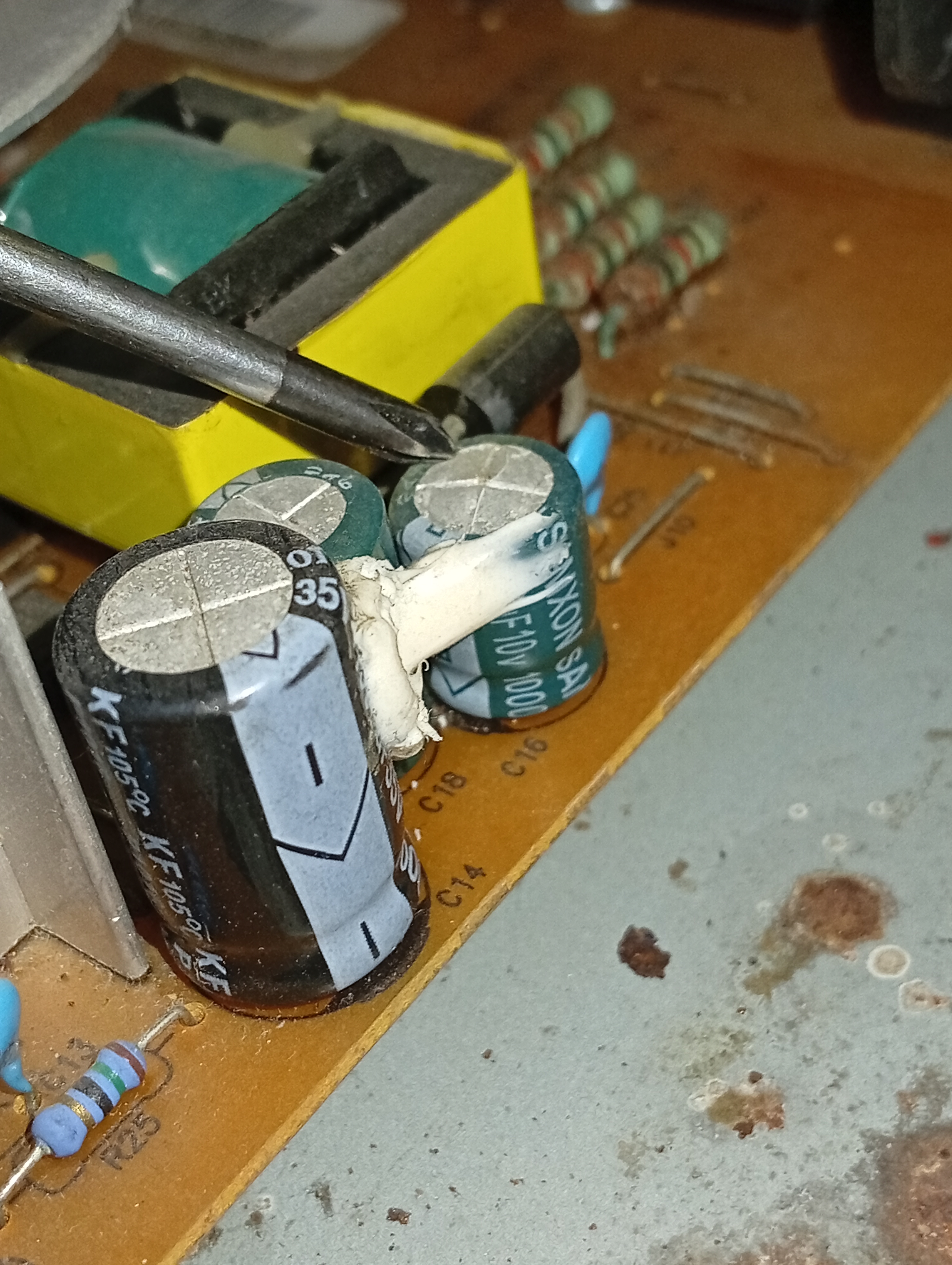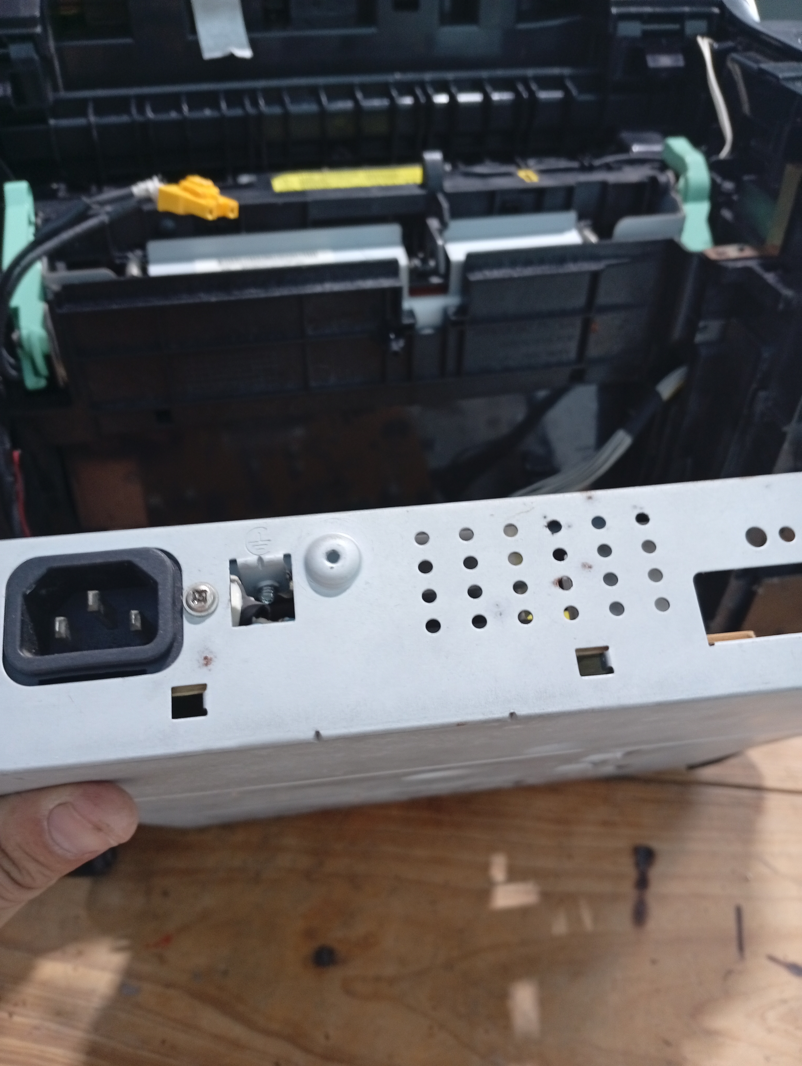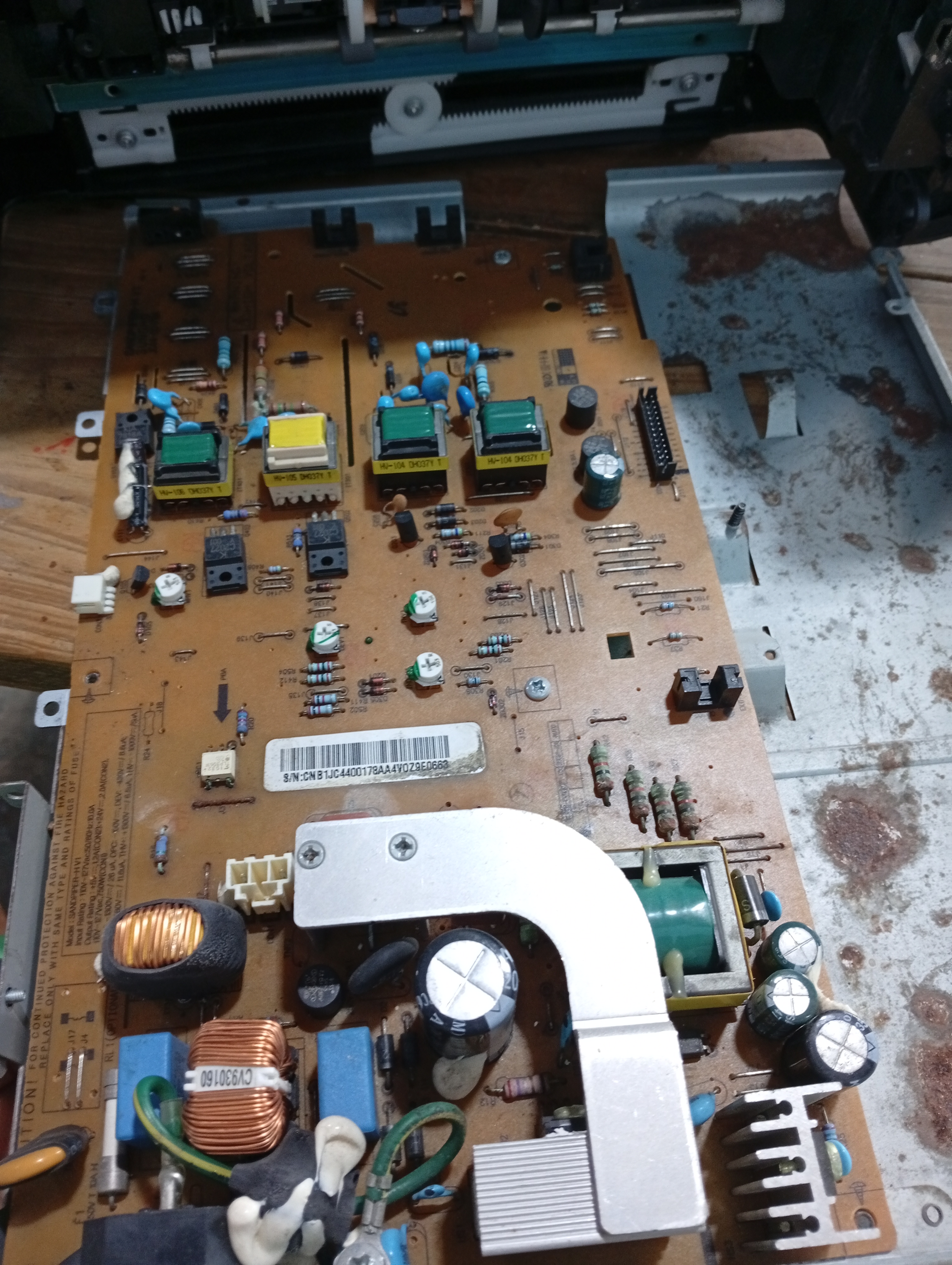 Retiré la placa de la fuente para reemplazar el capacitor, guardaba la esperanza que fuera este el origen de la falla.