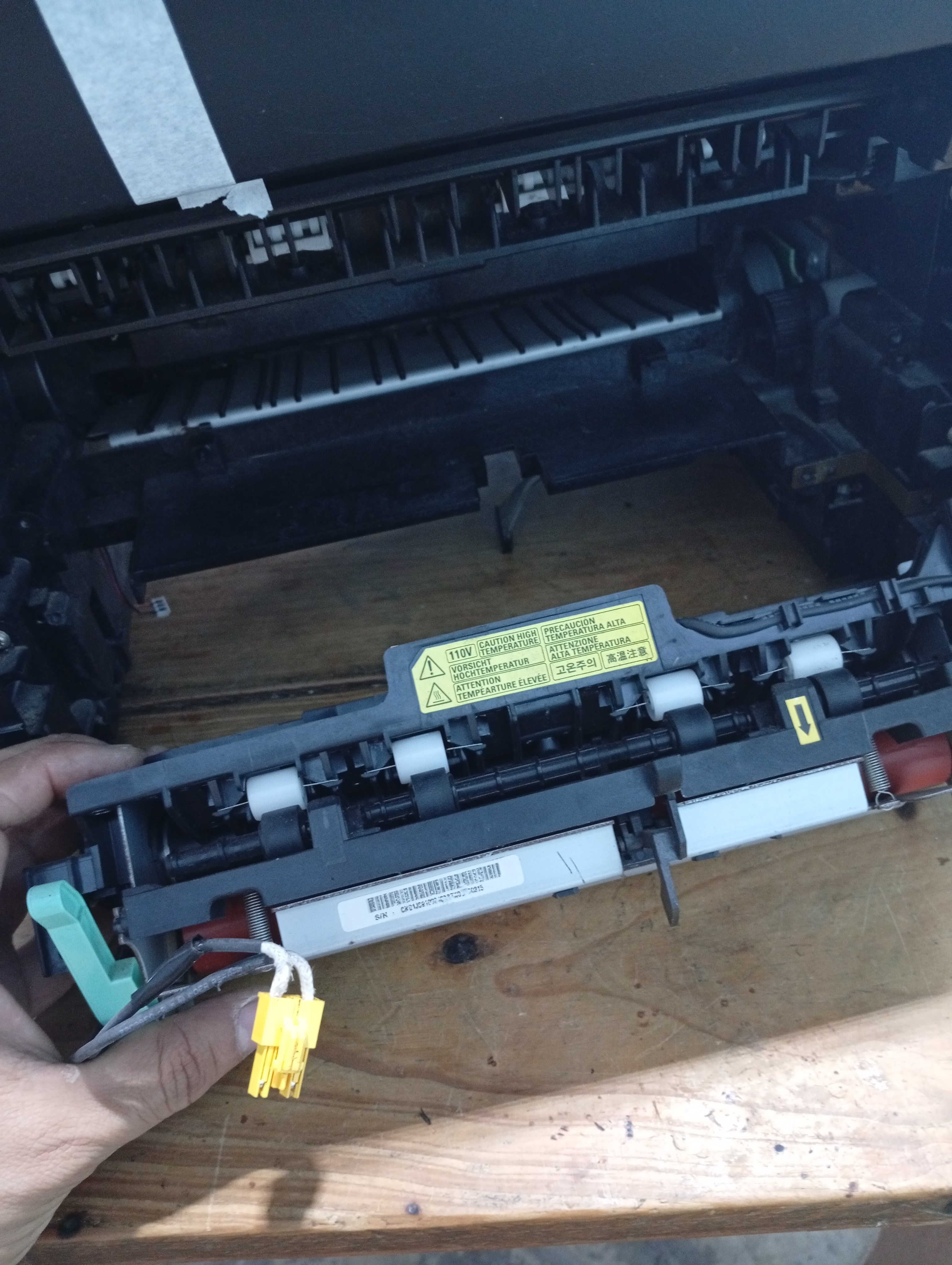 El fusor en este modelo de impresoras es facil de retirar, nones necesario desarmar la impresora por completo como en el cajón de las impresoras más compactas.
