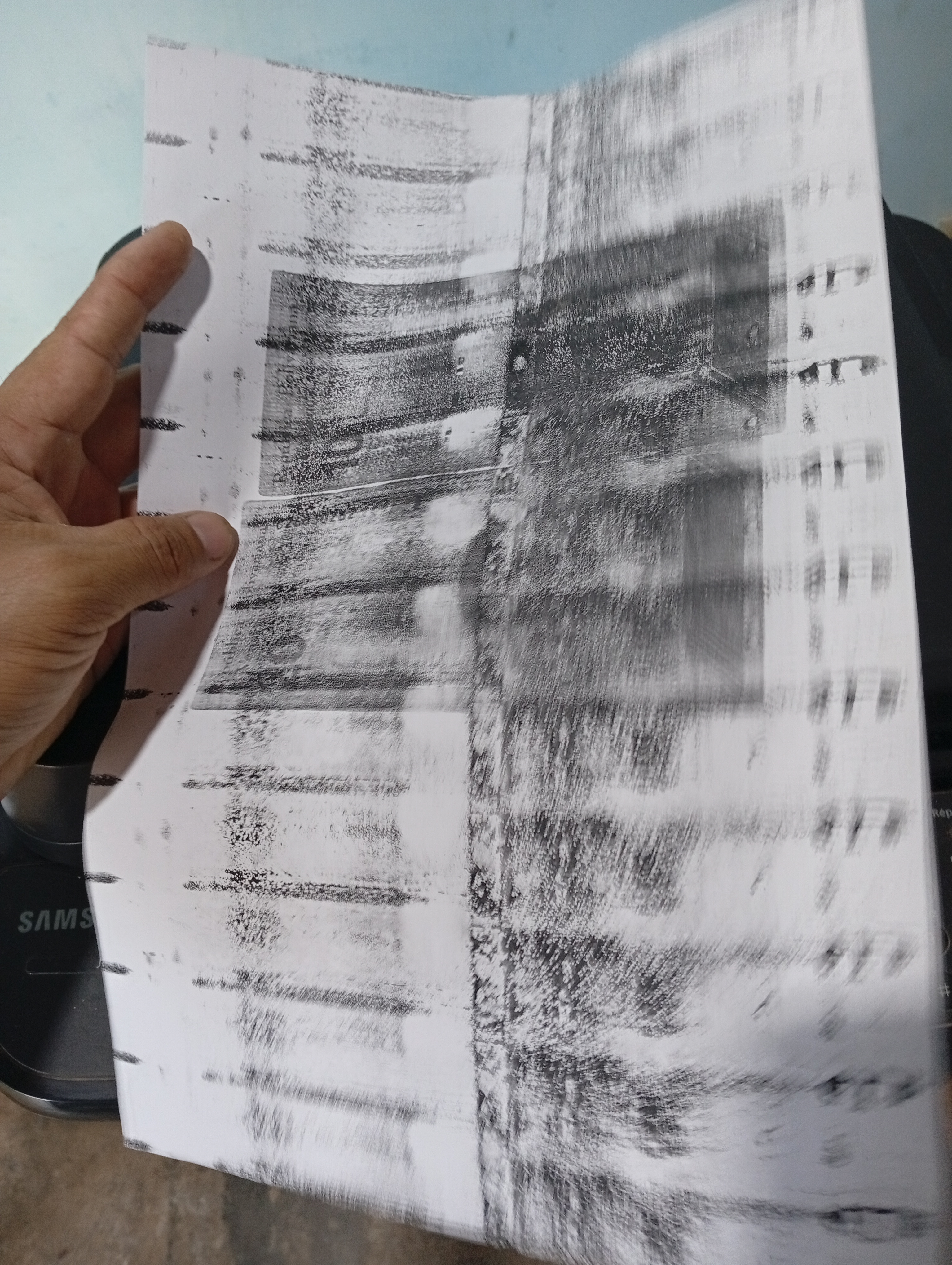 Cuando hice la prueba, la hoja siguió saliendo igual, así que esta vez saqué el fusor para revisarlo y de estar sucio, limpiarlo.