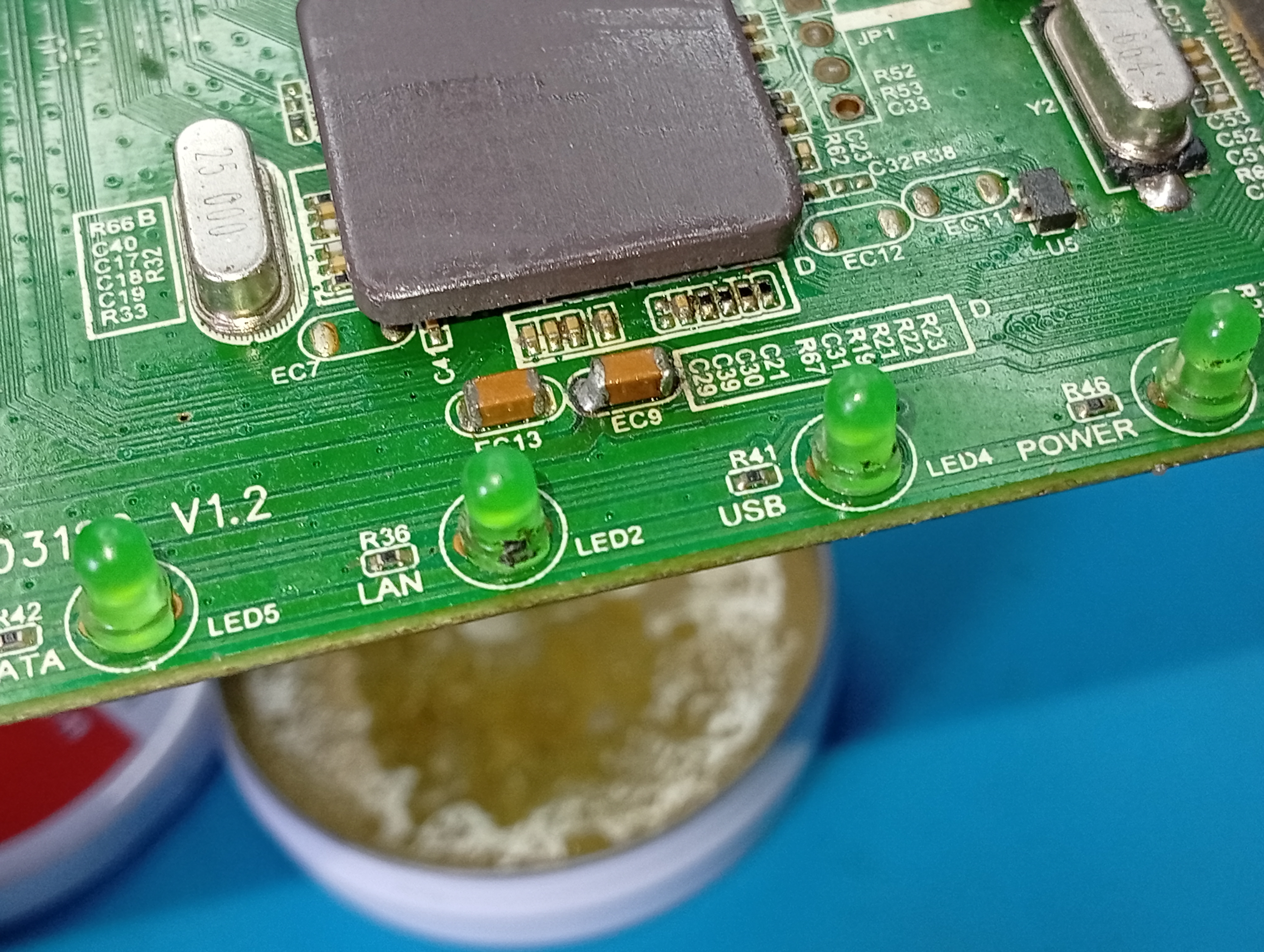 Ubicar una tarjeta que tenga componentes SMD, desoldar 1 componentes SMD, bien sea de 3, 4, 8 patas y 1 de dos puntos de soldadura, ejemplo capacitor cerámico, diodo o resistencia.