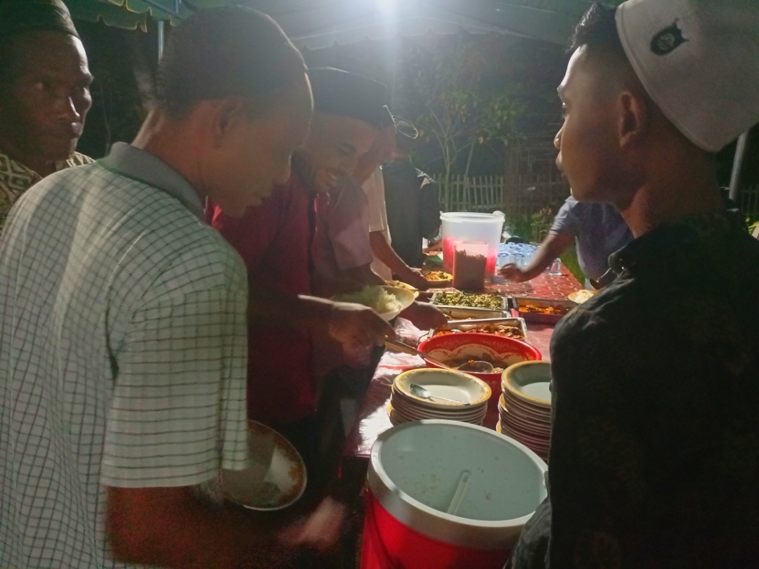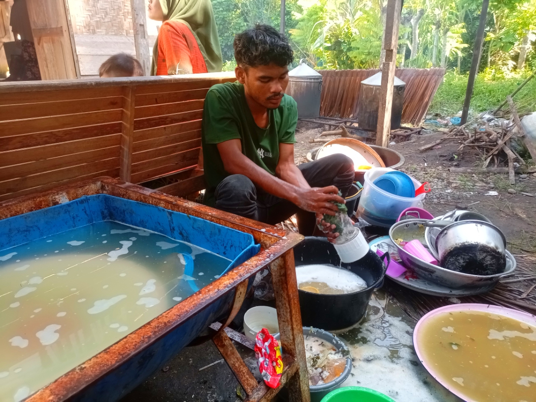 Pagi hari kami juga memasak makanan, berupa nasi dan kuah kuning dan menghidangkan kepada para tamu yang hadir, di sini masyarakat desa juga ikut membantu menyiapkan kebutuhan saat dalam acara kenduri, seperti mengutip piring,mencuci piring, memasak dan bantuan lain nya, tradisi ini selalu turun temurun dan sudah berlangsung sejak saya masih kecil.