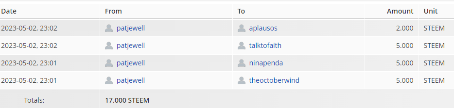 | @aplausos | Post | 2 STEEM Power (special mentioning) |