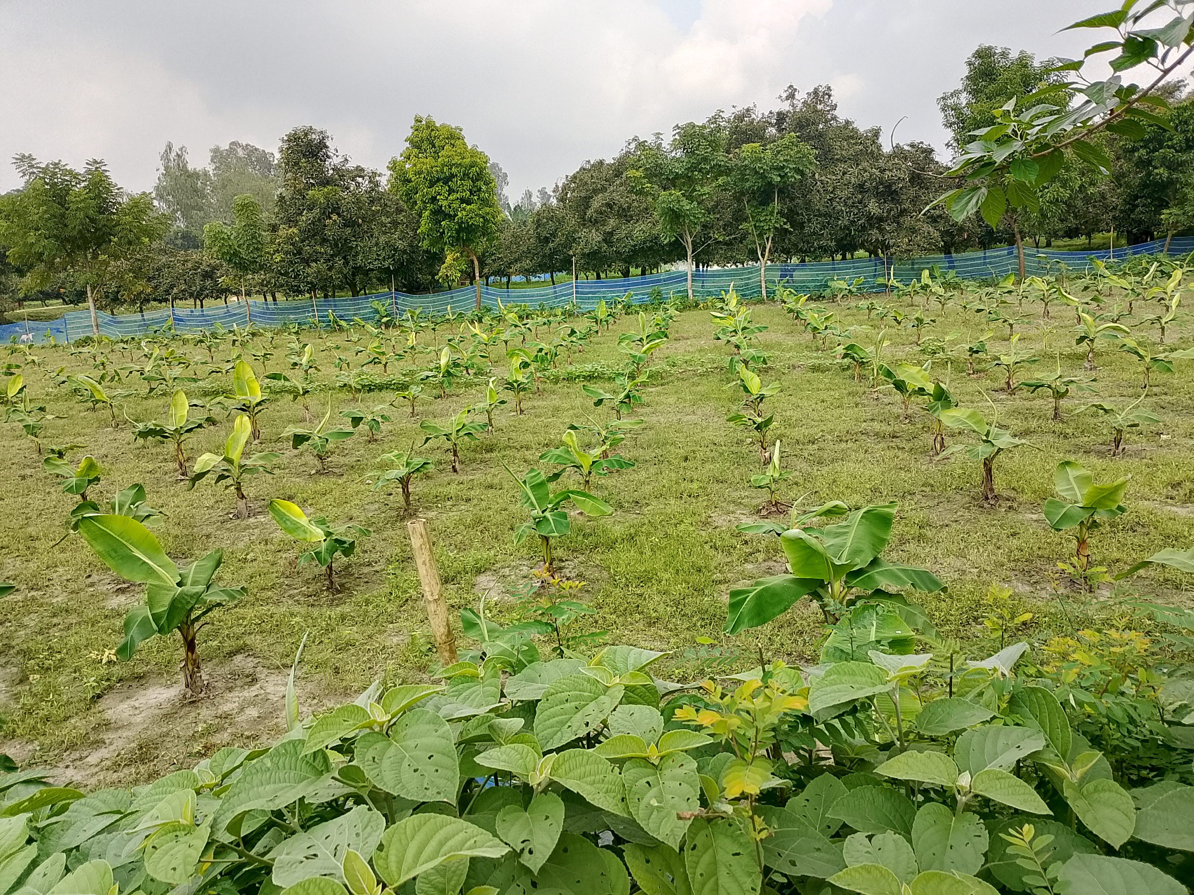 Assalamu Alaikum. I went to see the banana garden this morning. A few days ago, many bananas were planted. The land was prepared before planting. And surrounded by a net all around. And there were bigger plants along it. The banana saplings here will gradually grow up after a while. But we have to take care of the right time. And you have to look after it every day. Today I went there, and I was very nice to see that they were growing pretty well. Banana cultivation is a long -term cultivation that has to be cultivated for a long time. You have to listen very well.