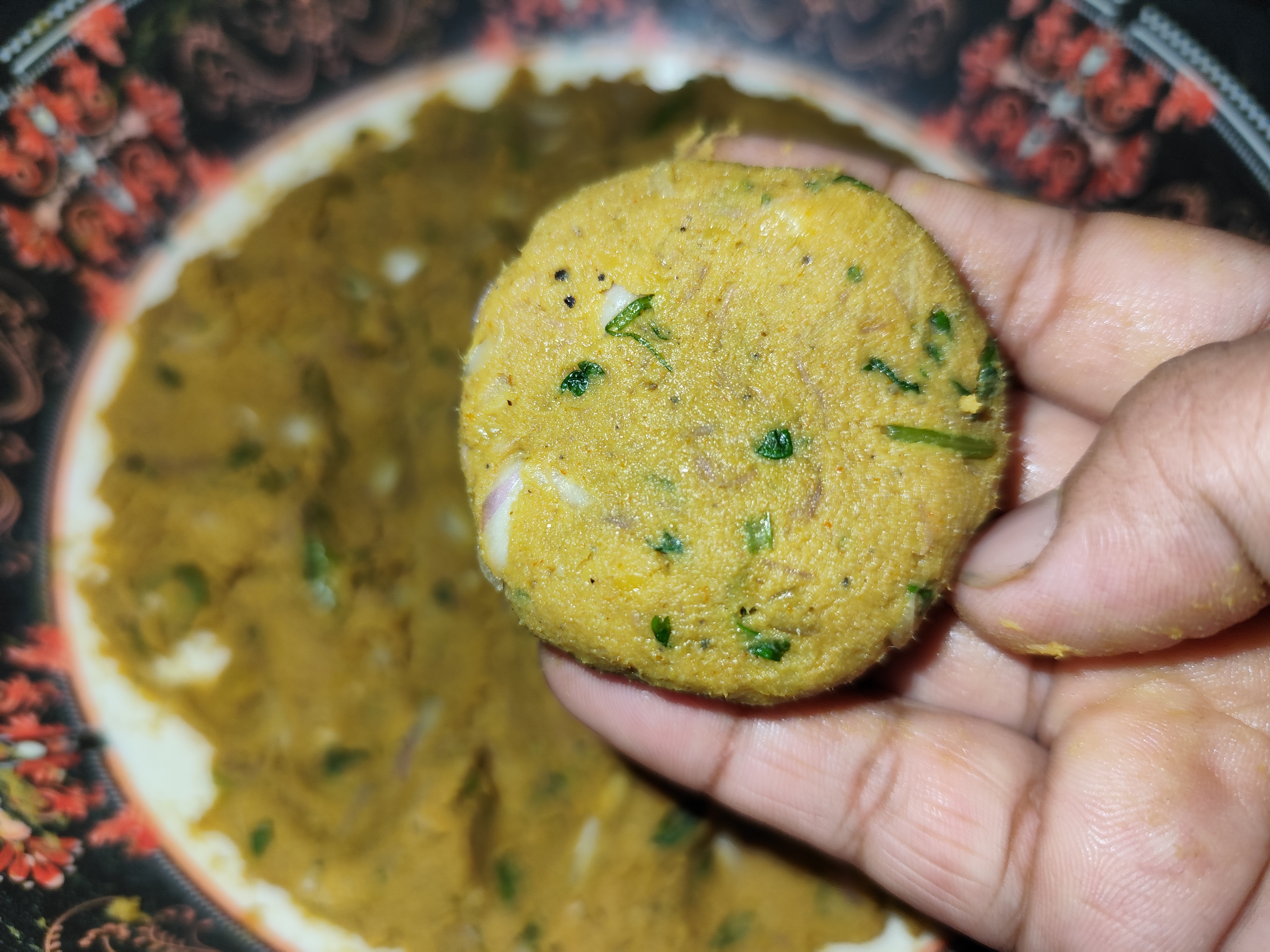 Now, I took a little of the mixture and shaped it into the shape of the kebabs I wanted. I made all the kebabs in the same way and kept them in a bowl.