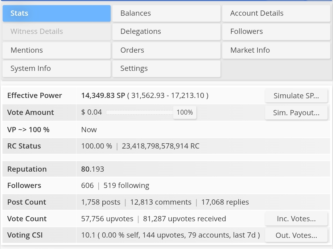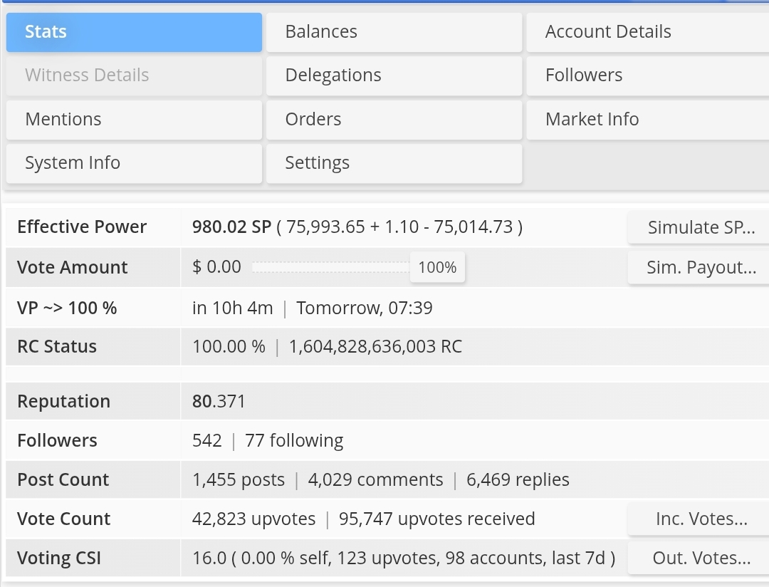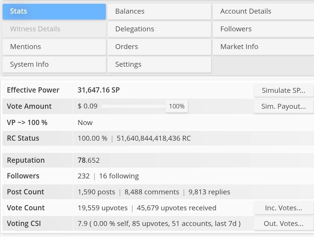 | Steem Power | 31,647.06 SP |