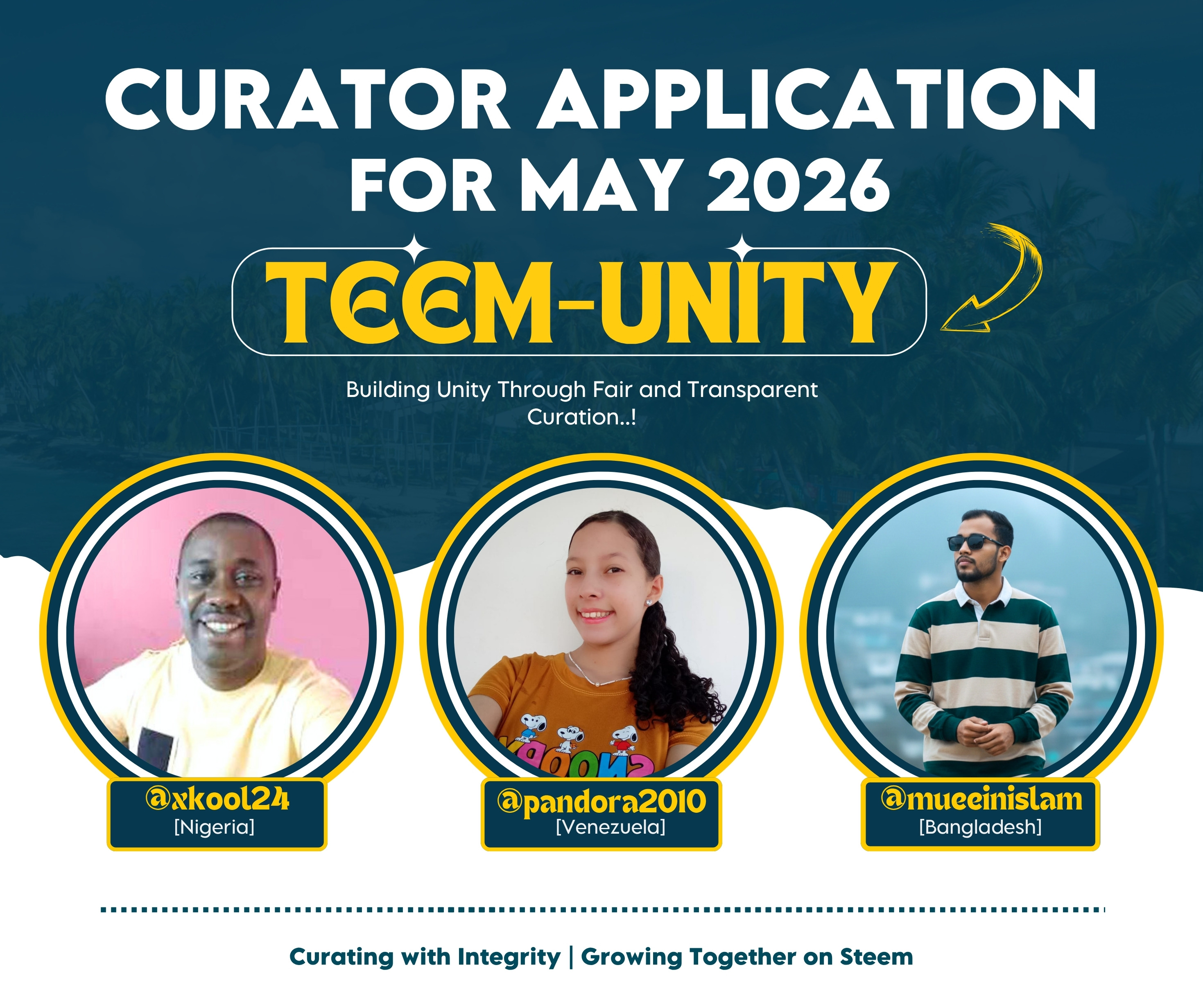 Assalamu Alaikum! With the arrival of the new month, a golden opportunity has been created for all of us to apply for Community Curator on the Steemit platform. And I especially express my sincere gratitude to @steemitblog for providing this wonderful opportunity. I am very happy to announce that we have formed a strong team of three skilled Steemitians from different countries for the purpose of applying for the Community Curator of the month of May 2026.