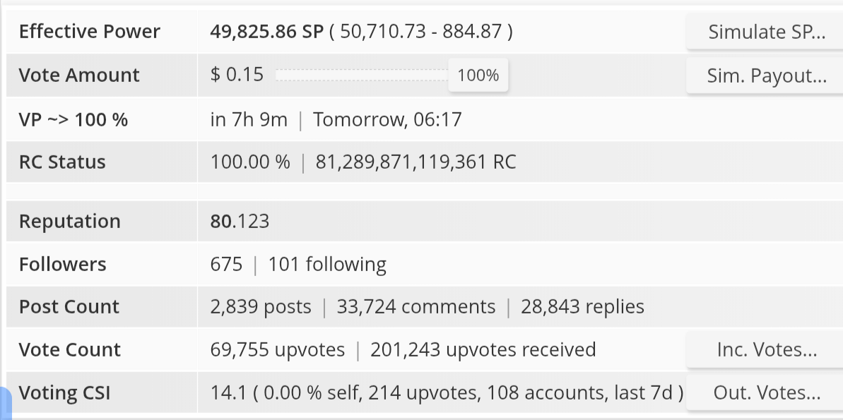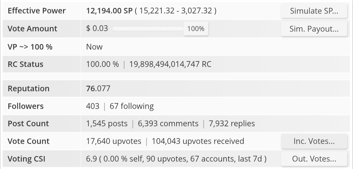 | Current voting CSI: | 6.9 ( 0.00 % self, 90 upvotes, 67 accounts, last 7d ) |