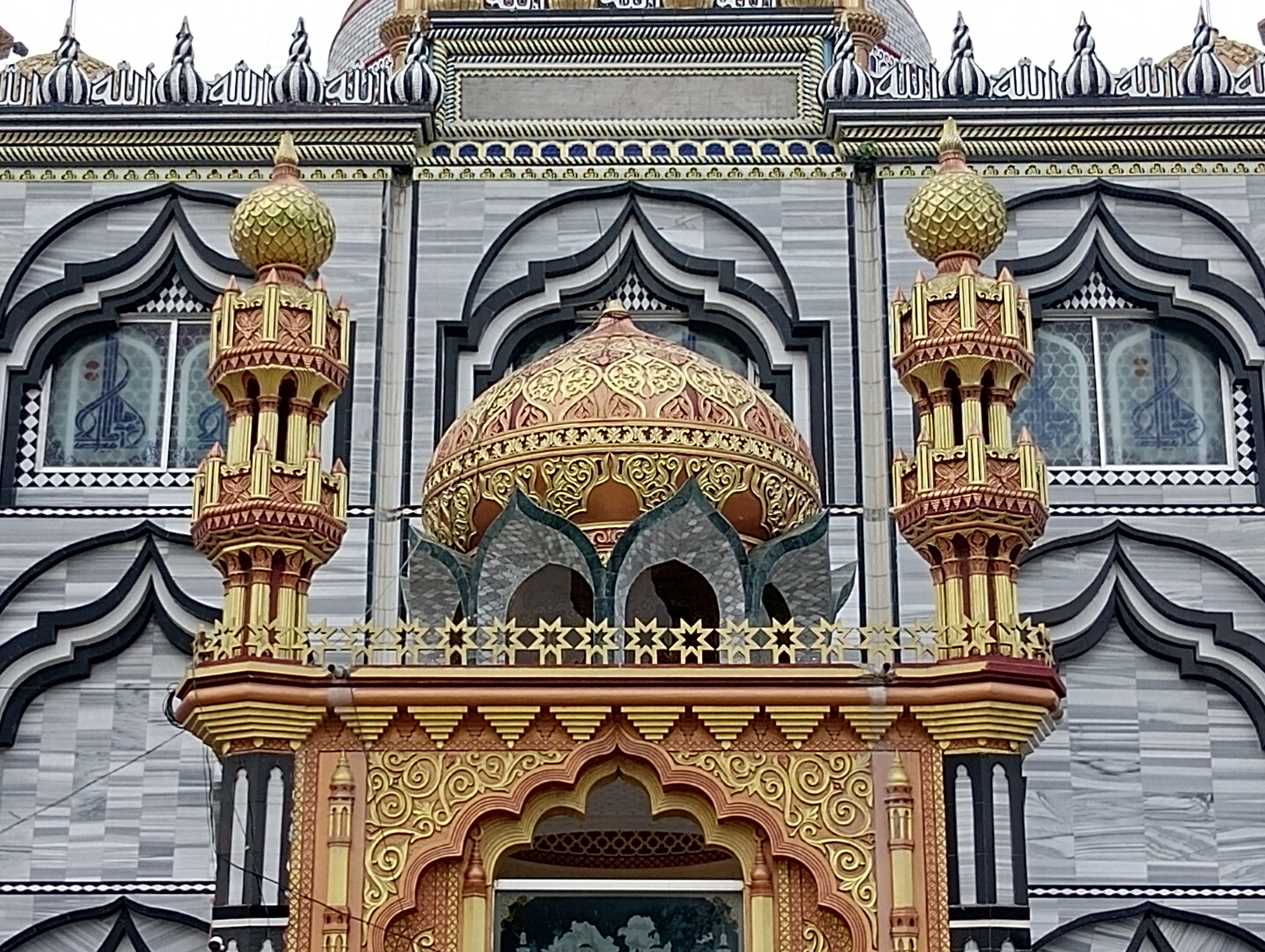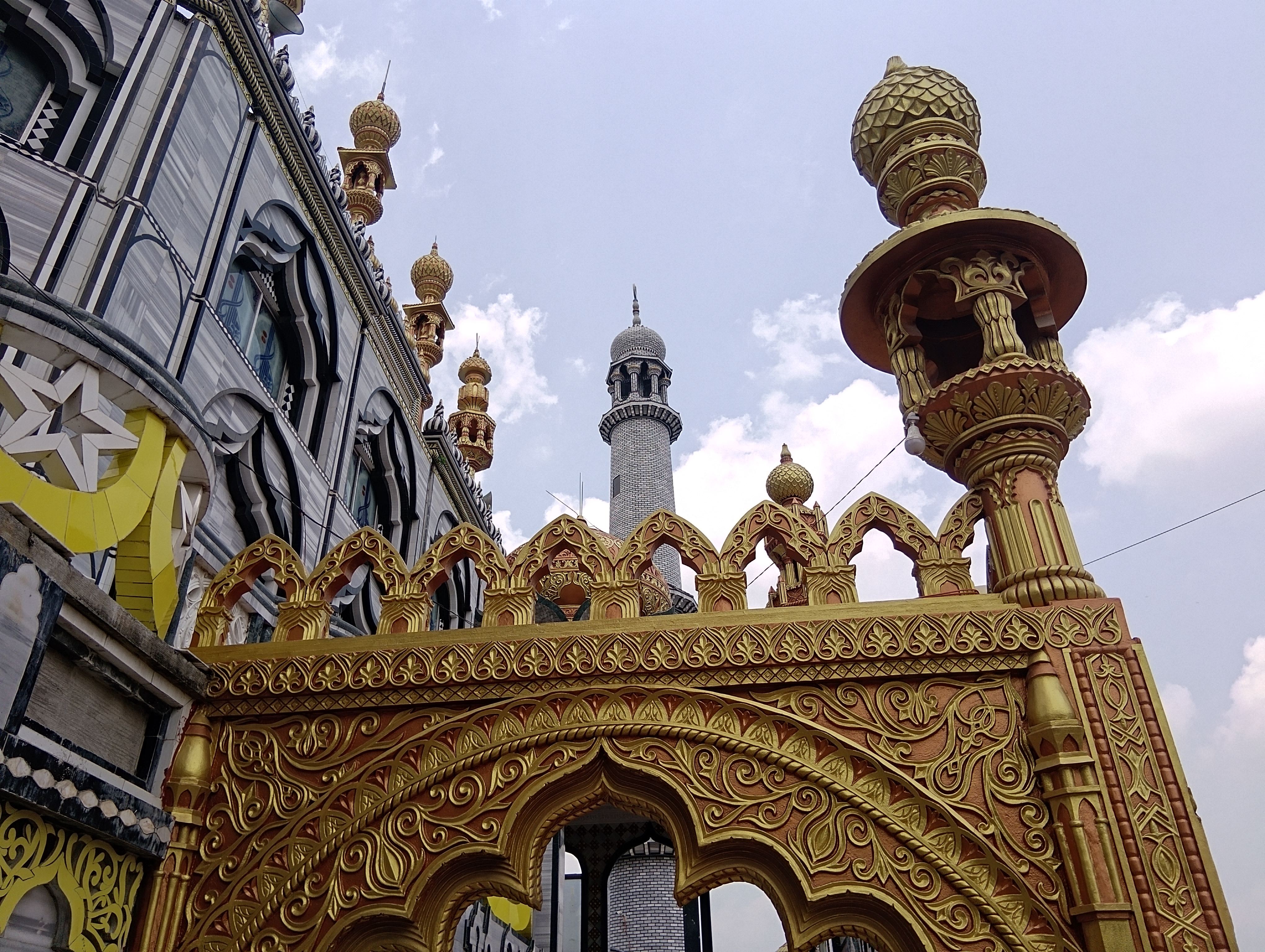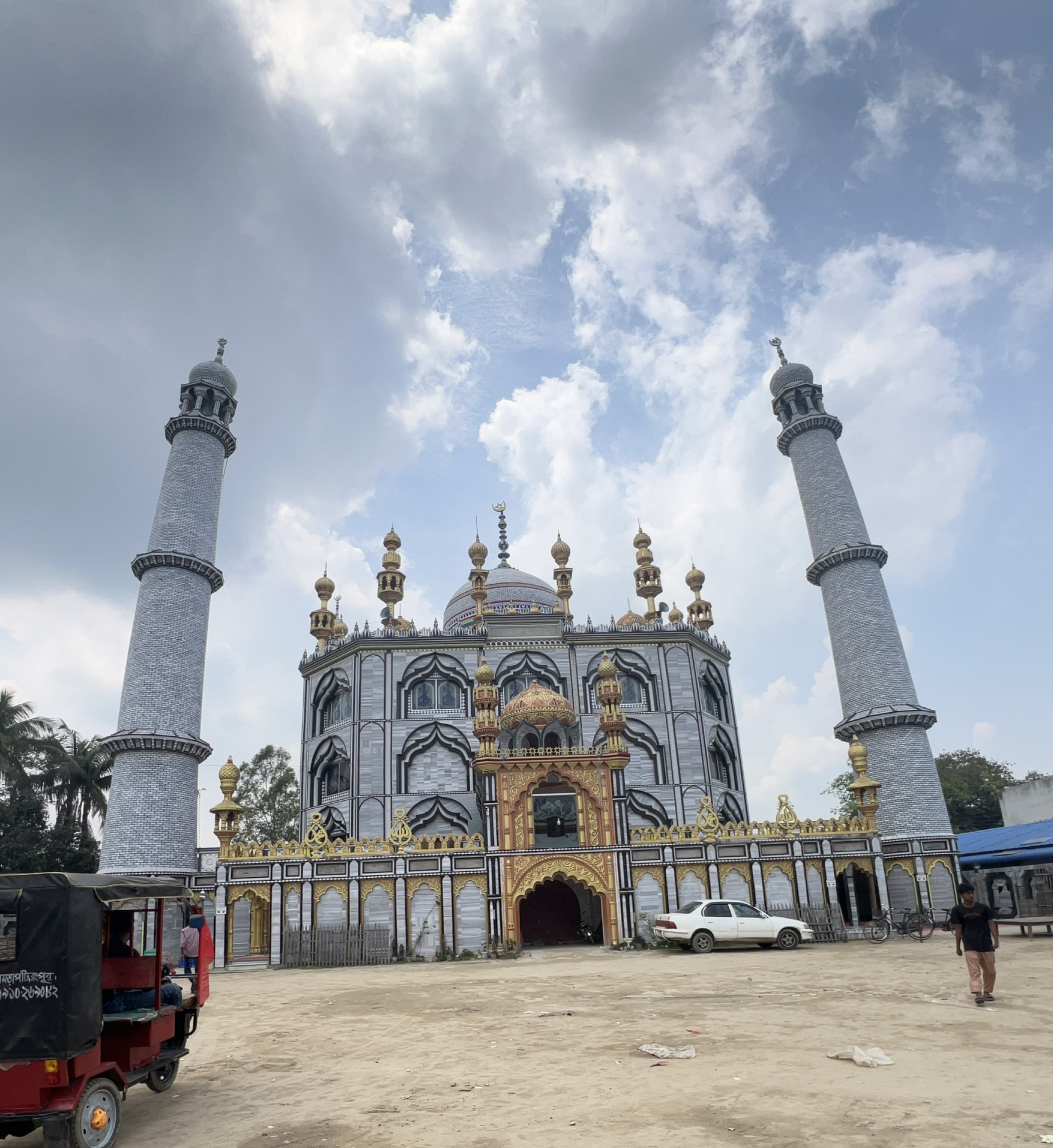 I visited Aftabganj Central Jame Mosque in Dinajpur district, which is an offbeat or lesser known but extremely beautiful tourist spot. When you see this mosque from a distance, you can see its white dome and marble-like design, which is modeled after the famous Taj Mahal. This is an extraordinary work of art. A unique combination of white granite and brick with marble. Coming from any part of Dhaka or Bangladesh to Fulbari upazila of Dinajpur district, one can reach Aftabganj Bazar by renting an easy bike for 15-20 taka per person from Fulbari railway station or bus stand. On the way there, the mosque is visible from quite a distance. It looks like it was built following the design of the Taj Mahal in Agra, but the color, inner pulpit, and arches are made in a unique design.