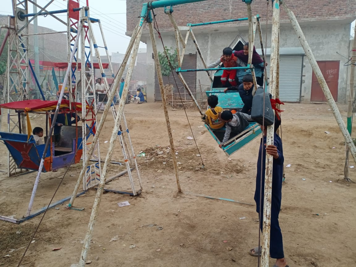 Actually it was not even afternoon, it was a little evening and when we reached there, we saw that there were many things here, where everything that should be in the fair was available. There were stalls of different kinds of food which we used to eat as children and had a lot of fun. We gave them all kinds of swings. My niece used to be very afraid of jumping but when she tried jumping a lot she liked it and had a lot of fun.