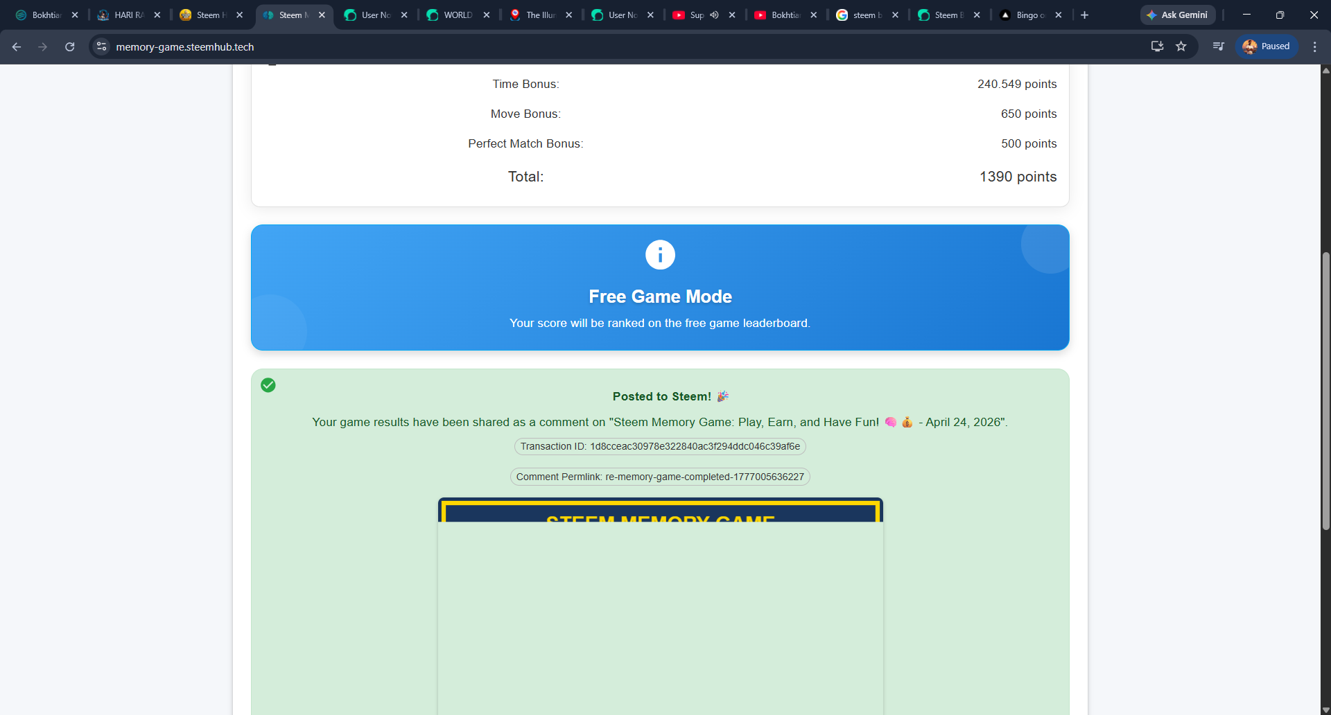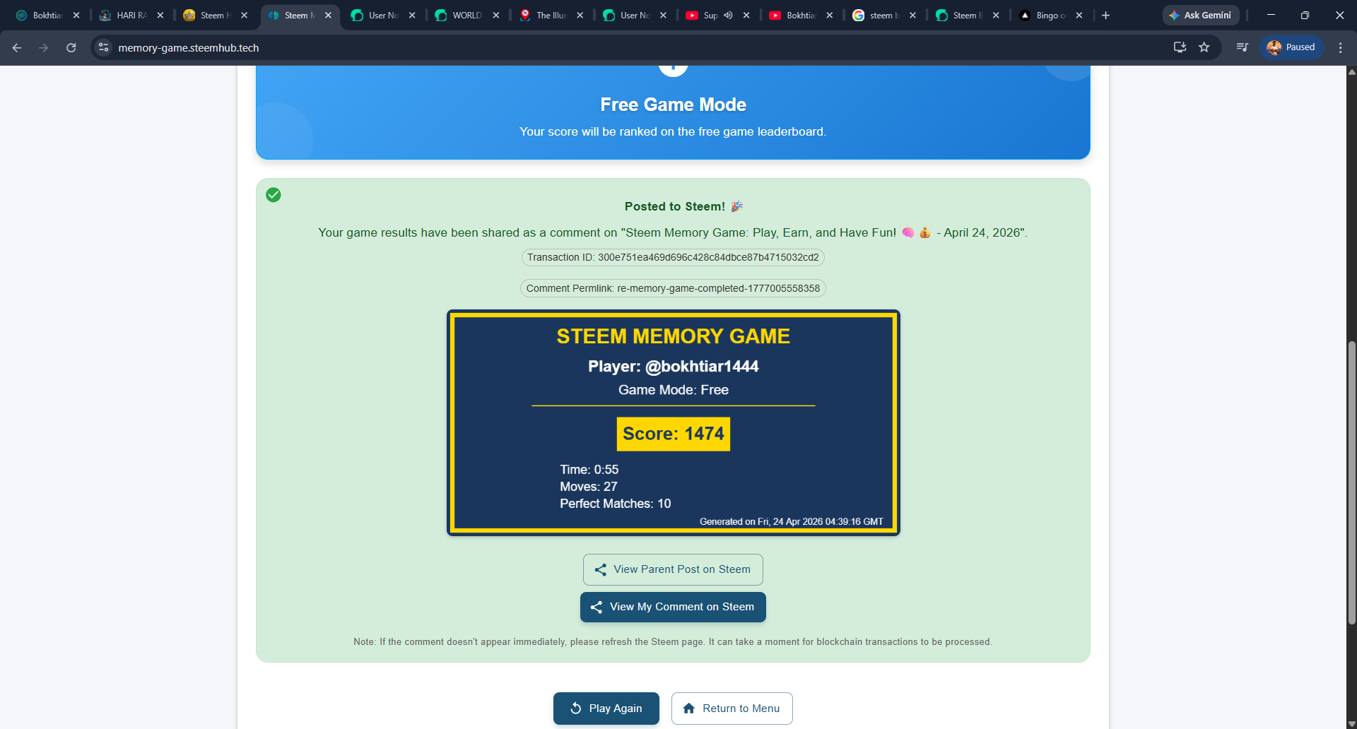 Steem Memory Game | 24 April 2026