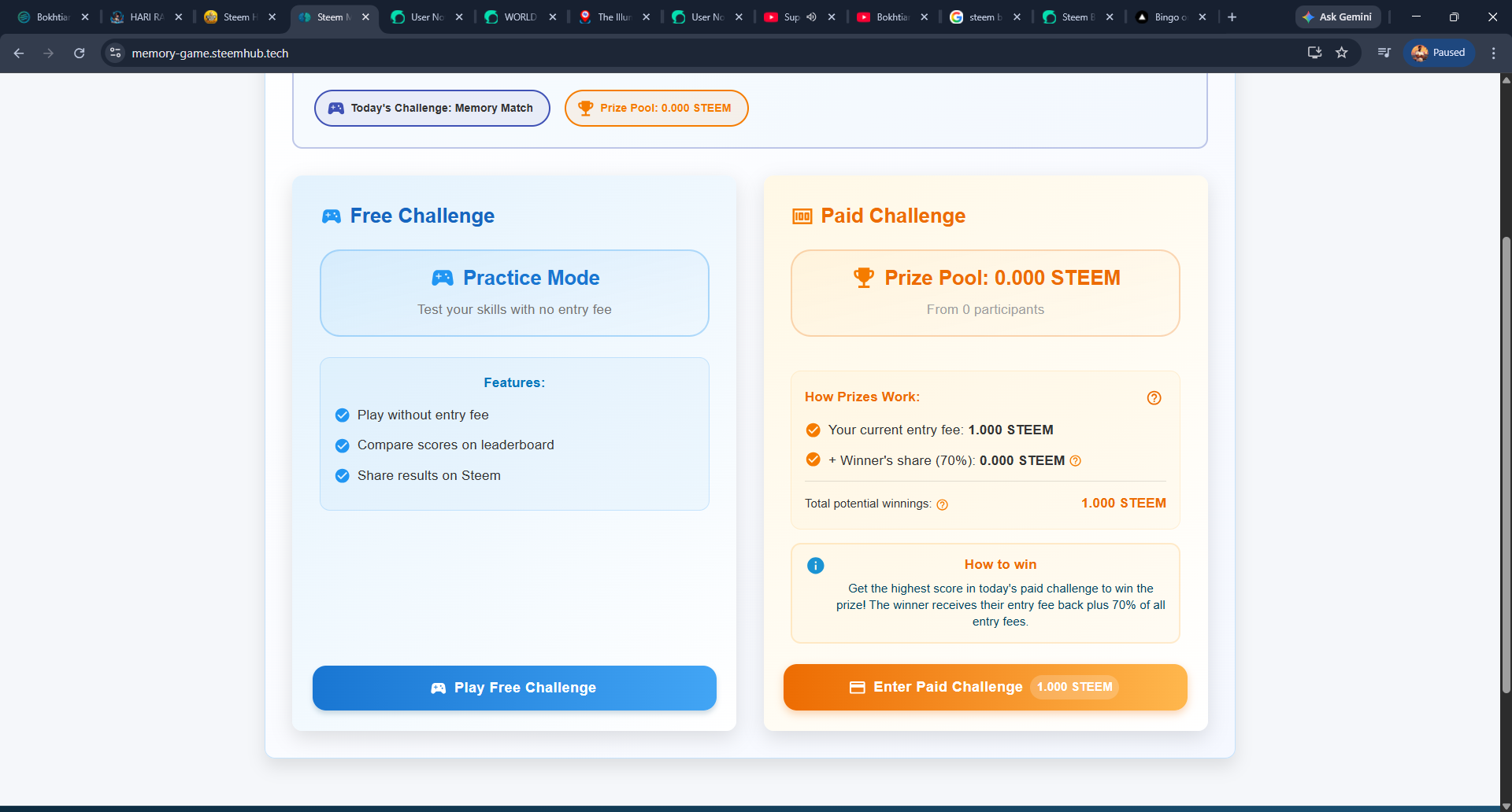 Steem Memory is basically a card game that tests players' attention and memory. It's challenging to keep track of the cards at each level, but it's also fun.