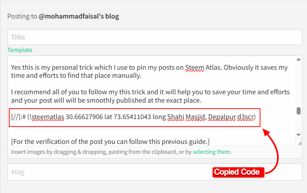 Now you have the location coordinate code along with the description is in your clipboard and you have to use this code to paste in your post anywhere. I recommend to paste it at the end which helps the moderators to find it easily for the verification of the location.