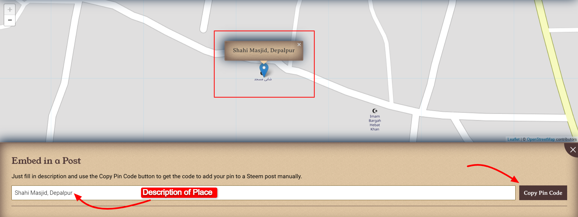 While adding the pin description add place name and the city name such as Shahi Masjid, Depalpur. Do not add irrelevant text or complete title of your post as the pin description.