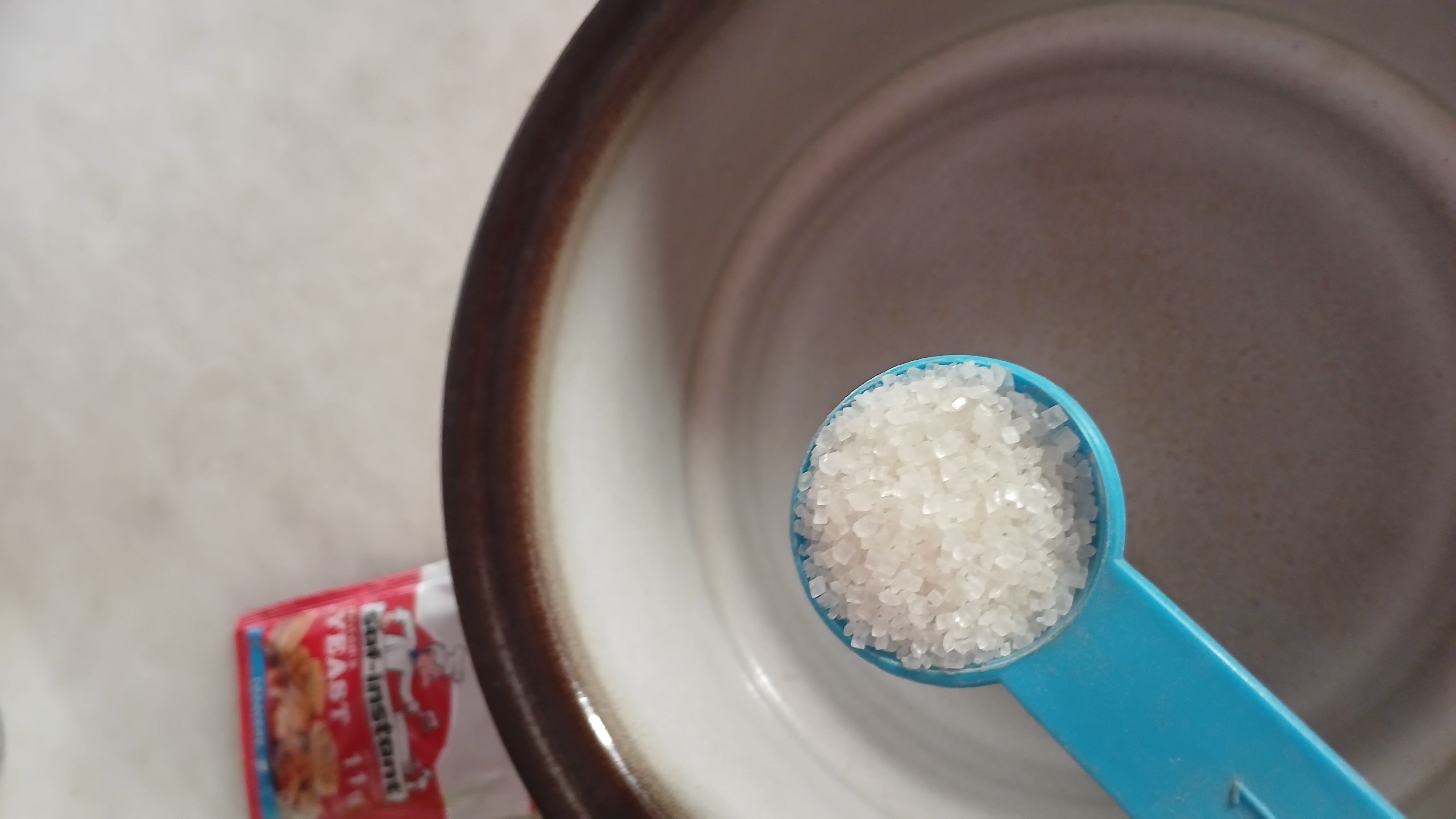 - Add sugar, yeast and warm milk in a pan . Mix all ingredients well and cover it with a lid and leave it for 10 min to activate yeast