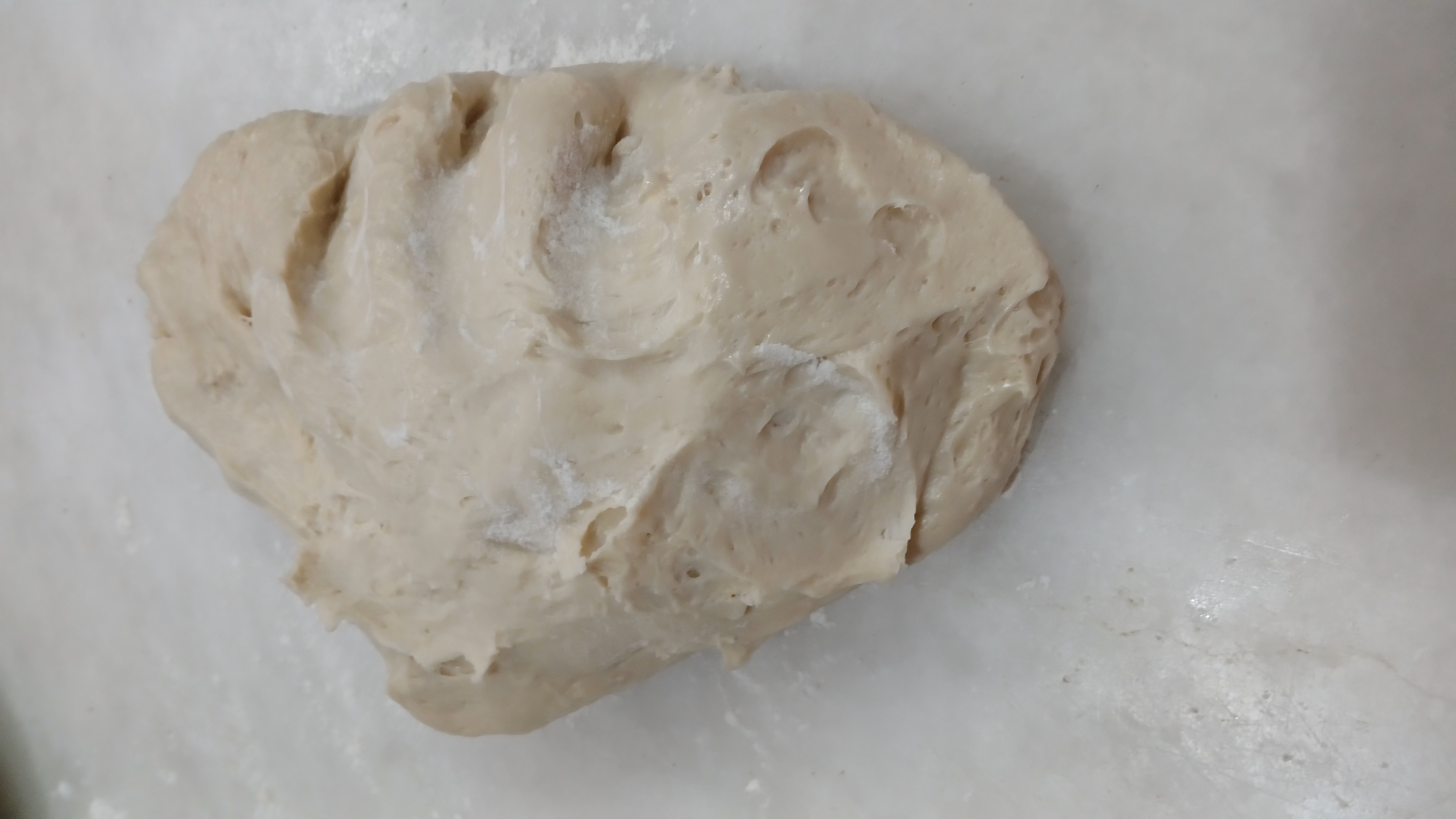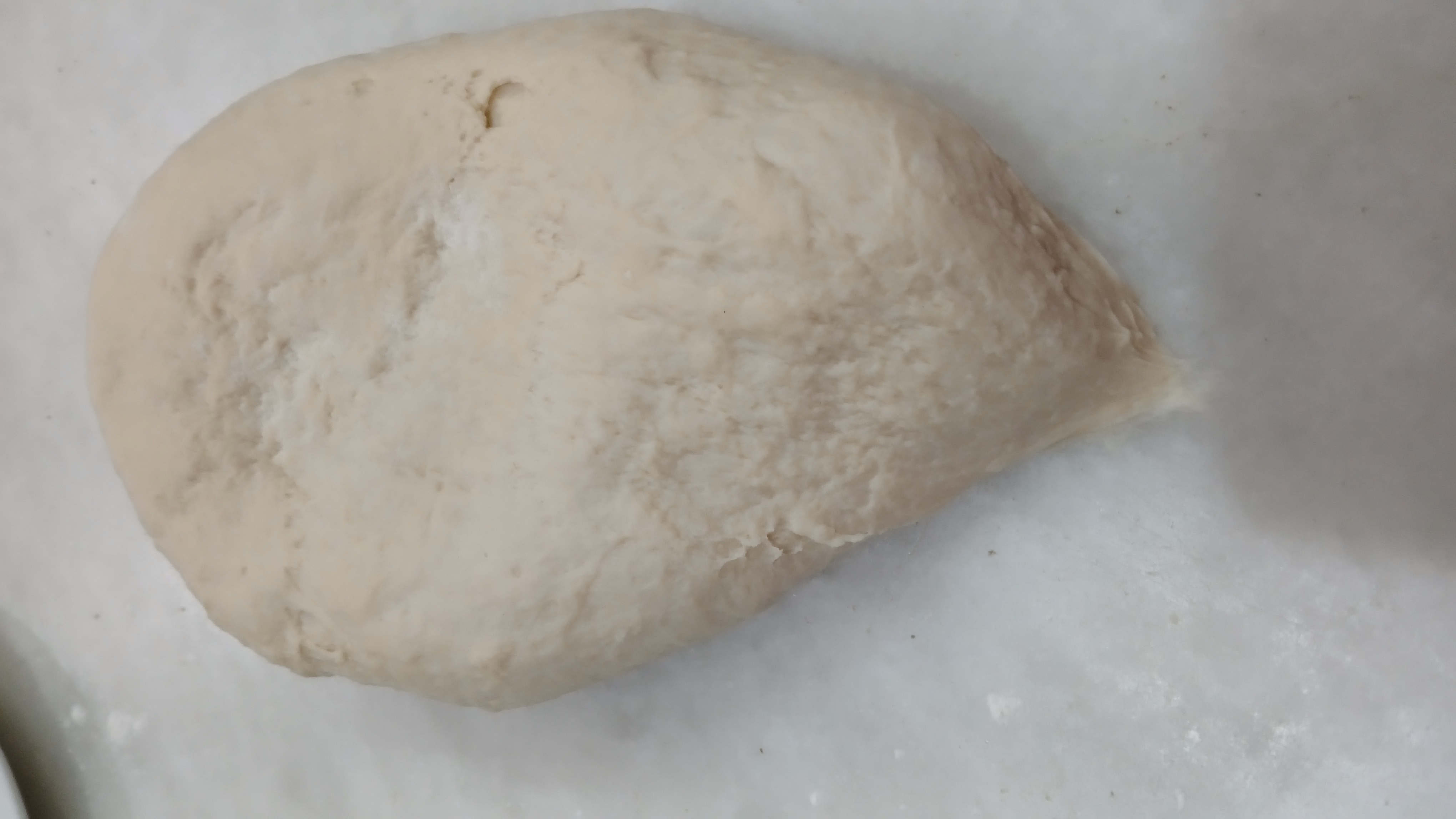 - After kneading take out dough to counter and stretch it by hands , roll it and stretch it again. This step is very important to make perfect dough.