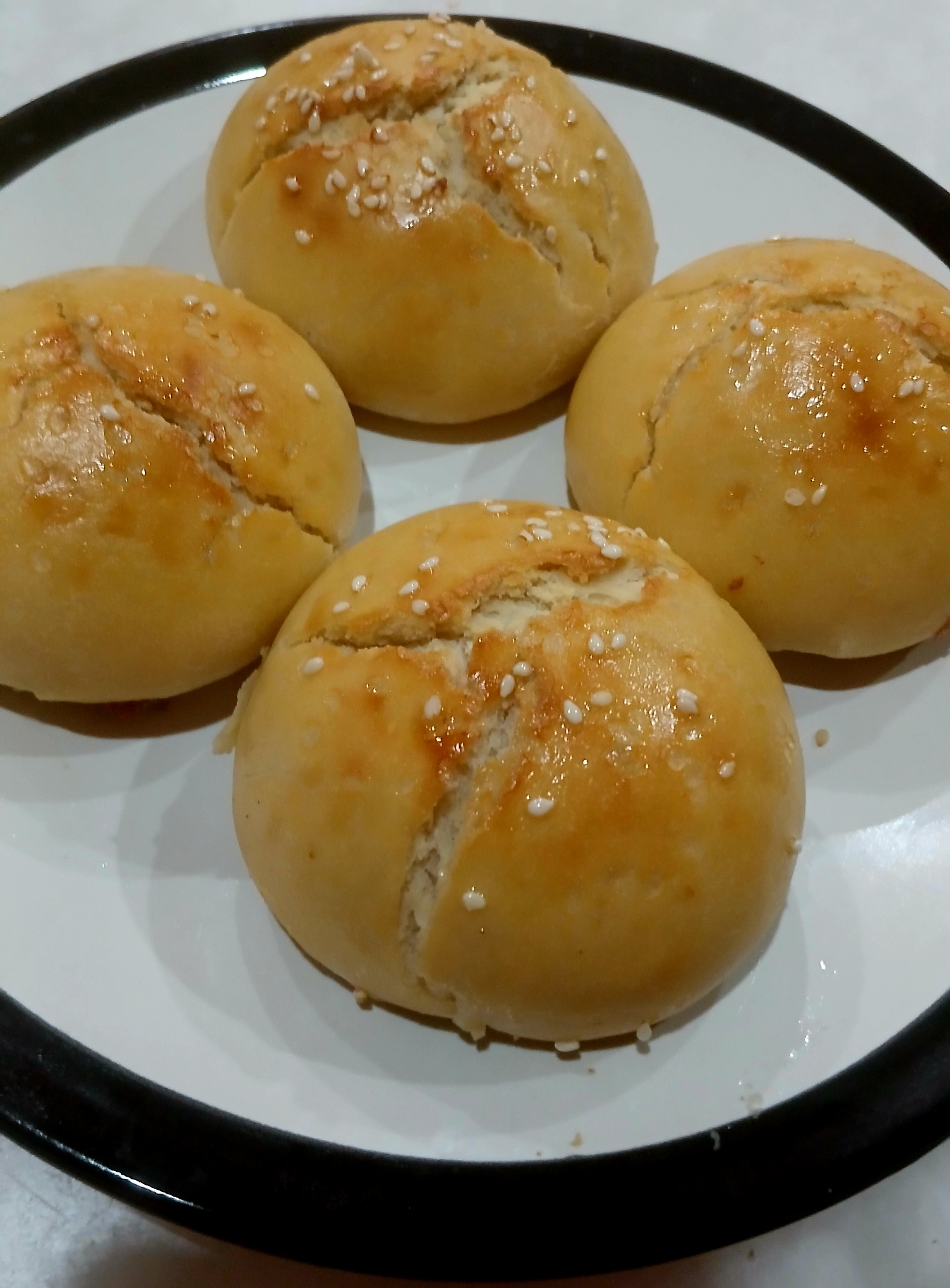 - Now bake these dough balls in preheated oven at 180°C fr 15-20 min. Take out bread from oven and spread butter /oil pm bread . Delicious bread is ready to serve.
