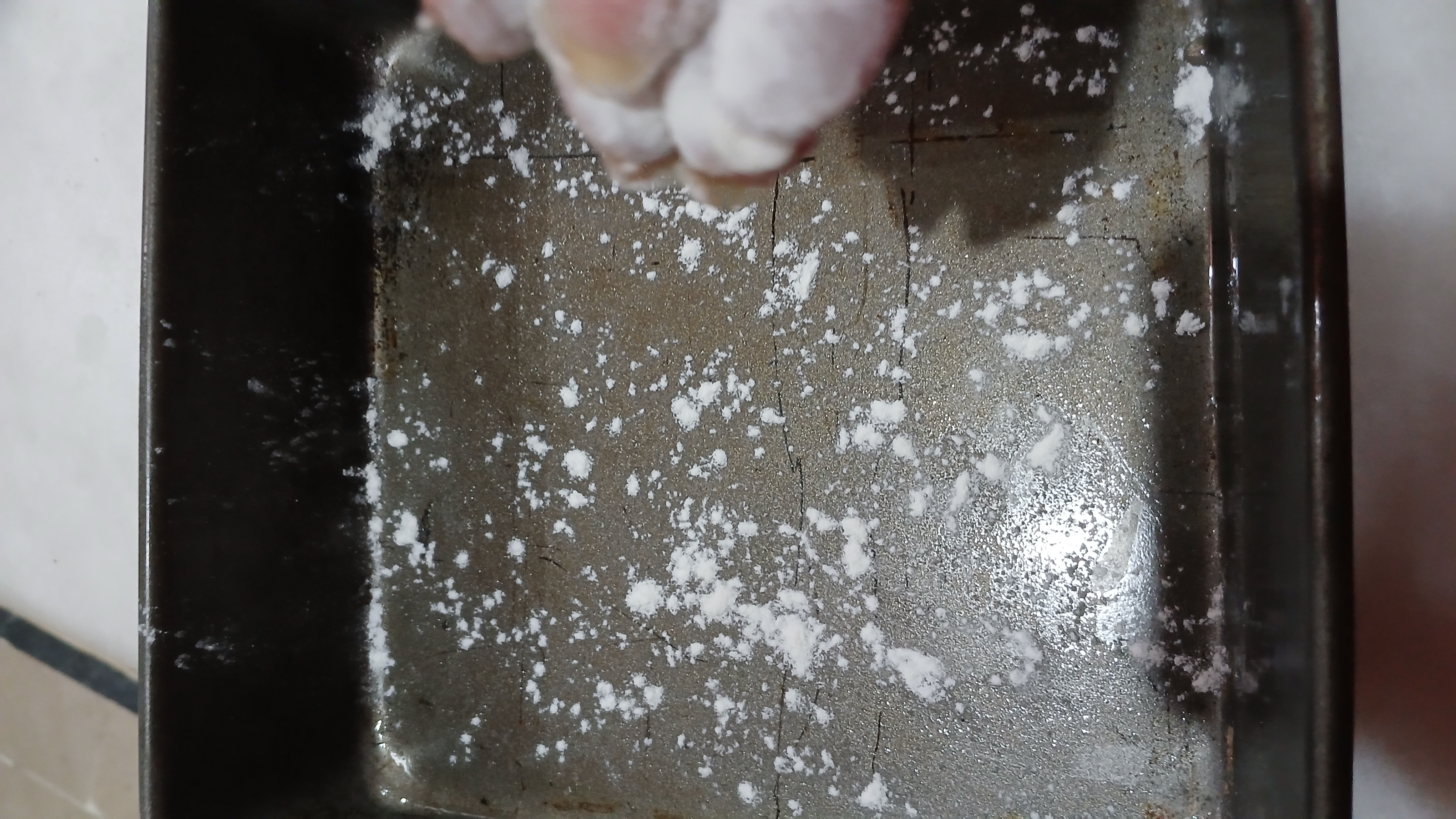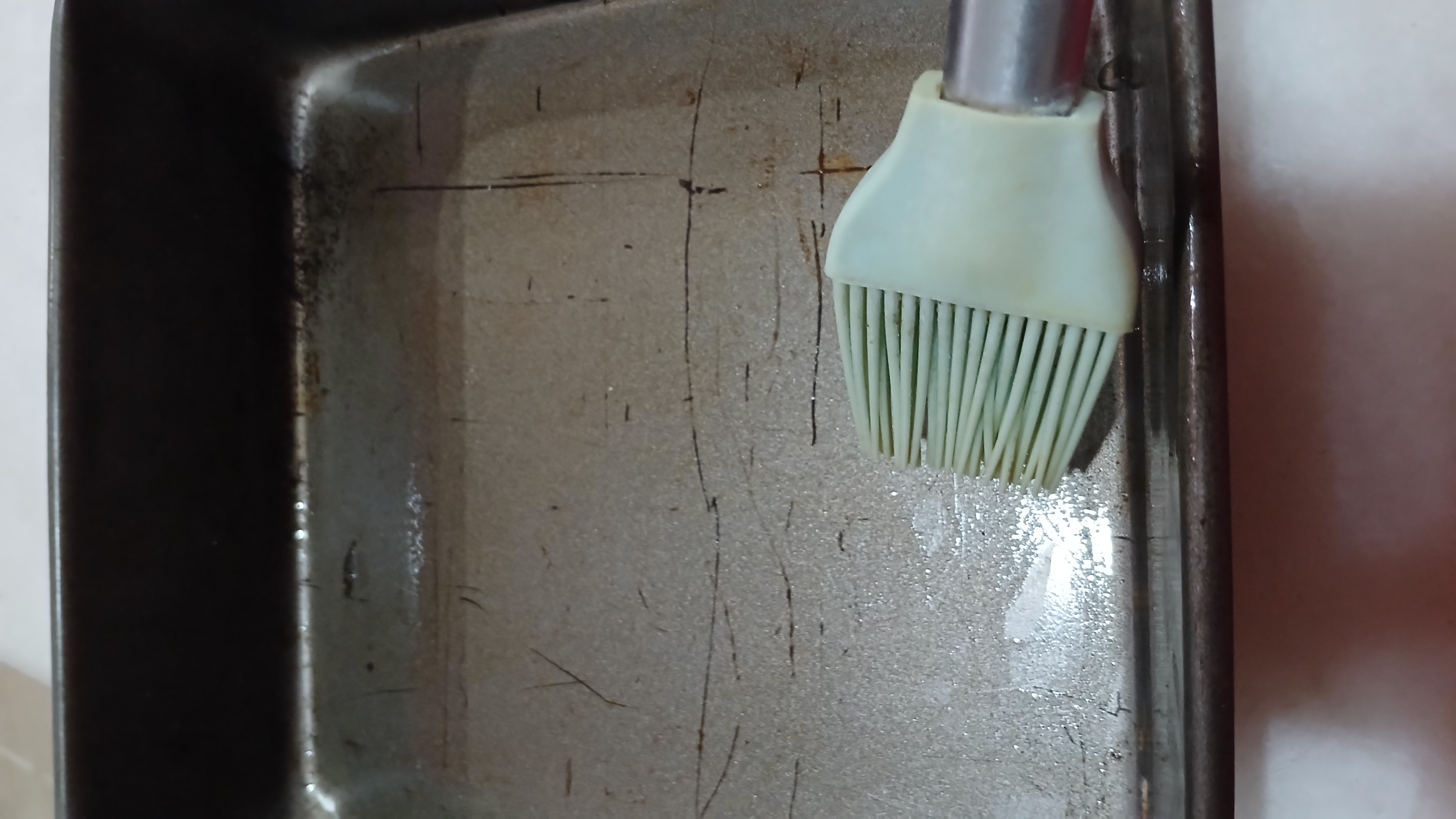 - Mean while prepare baking try by oiling and dusting flour on base of the try.