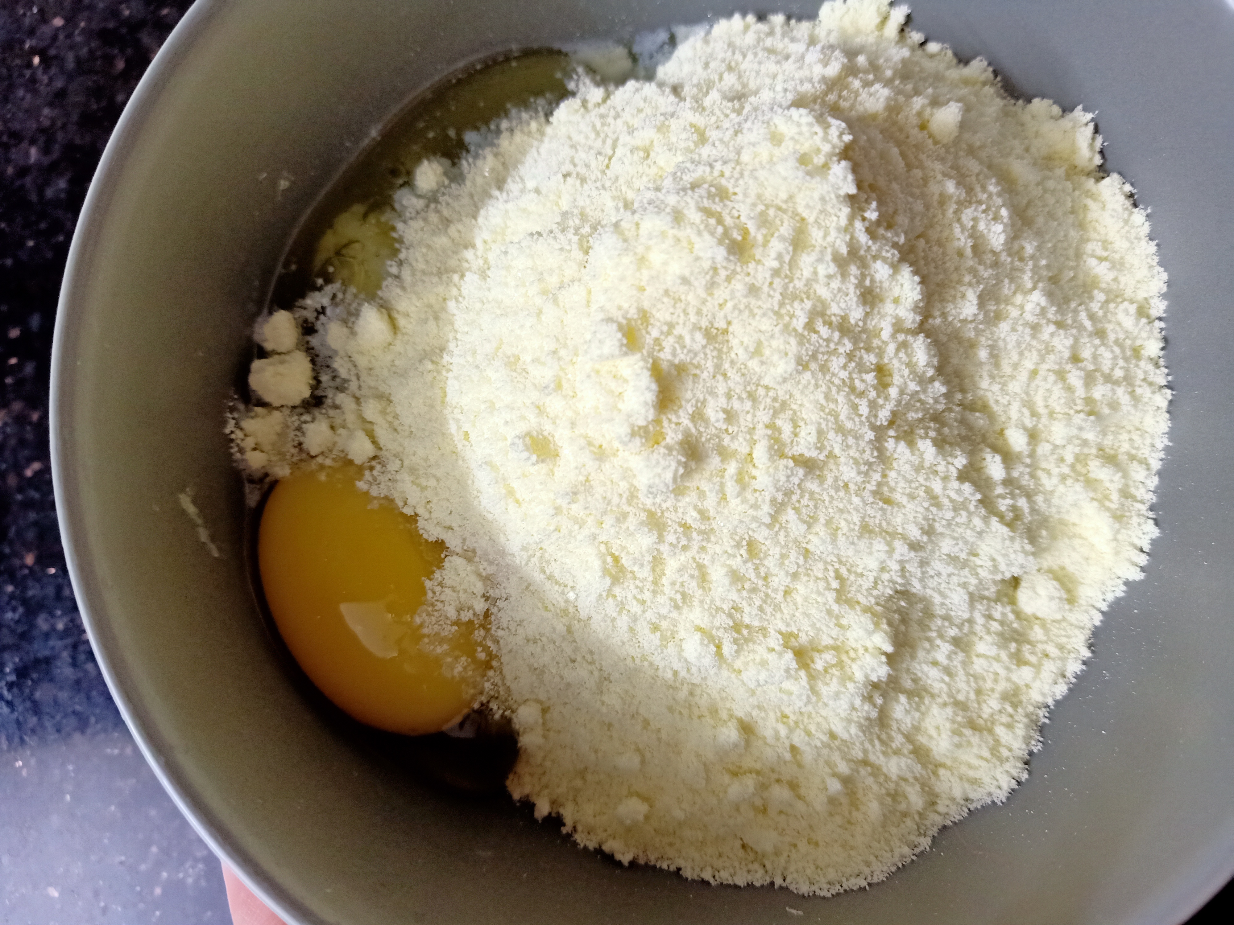 এরপর এর মধ্যে ১টি ডিম,১কাপ গুড়া দুধ, ১কাপ চিনি, ২টি এলাচ গুড়ো করে পাউডার করে দিয়েছি আর হাল্কা একটু লবন....