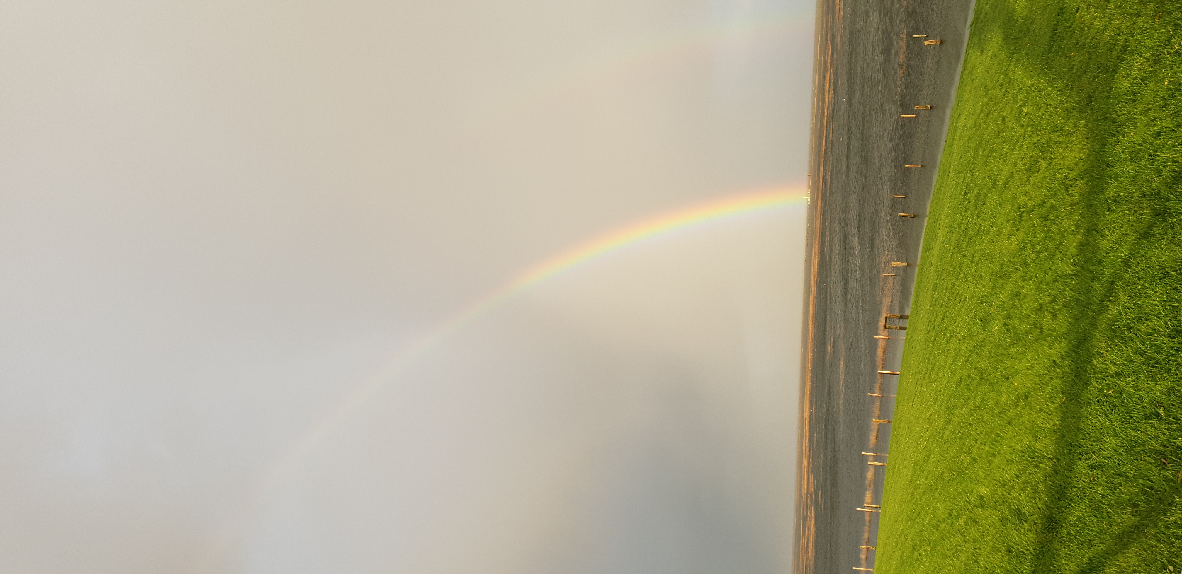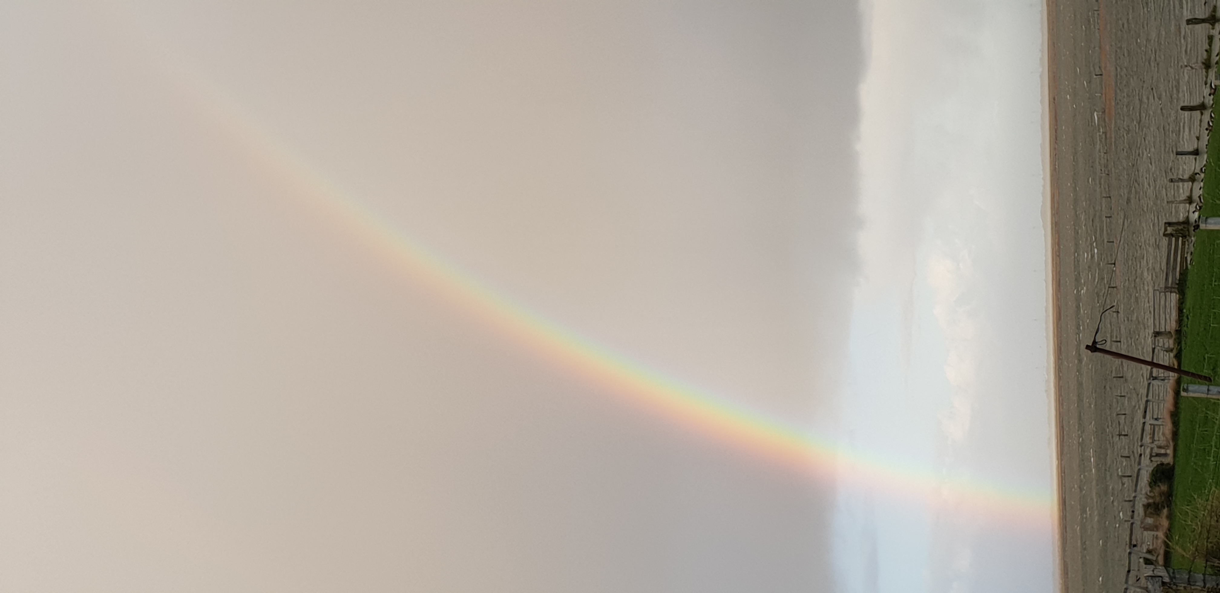 Es waren nur etwa 30 Sekunden und der volle Bogen zeichnet sich in den Himmel, ich eile um die Position zu finden, den Moment einzufangen, auch wenn's trocken hier aussieht, ich wurde richtig nass, der westwind trieb eine Regenfront vor, im Südwesten stand die Sonne und anstelle des ganzen Bogen zeichnet er sich doppelt östlich von mir Richtung Festland.